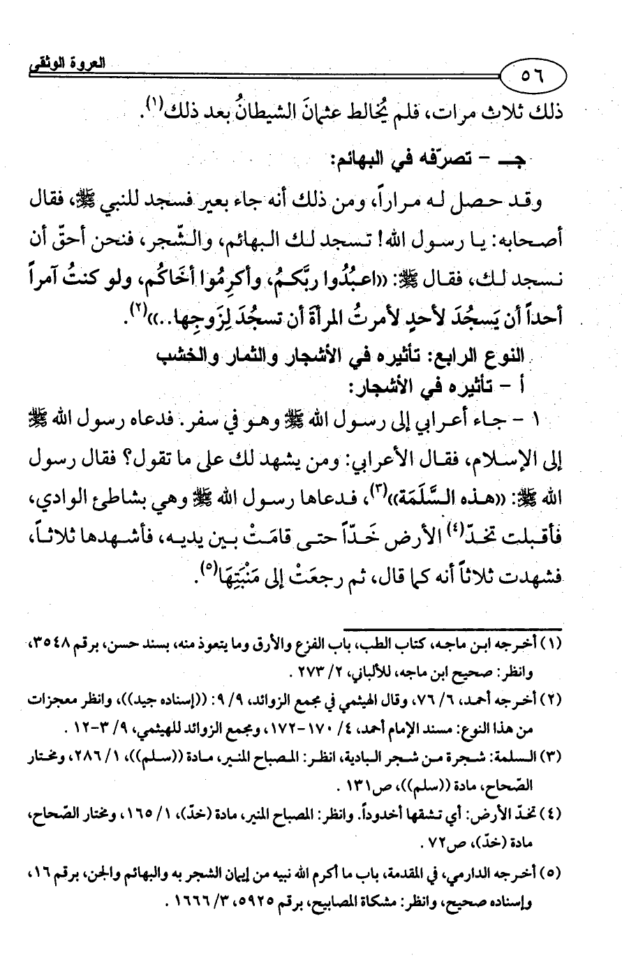 (¬5) أخرجه الدارمي، في المقدمة، باب ما أكرم الله نبيه من إيمان الشجر به والبهائم والجن، برقم 16، وإسناده صحيح، وانظر: مشكاة المصابيح، برقم 5925، 3/ 1666.
