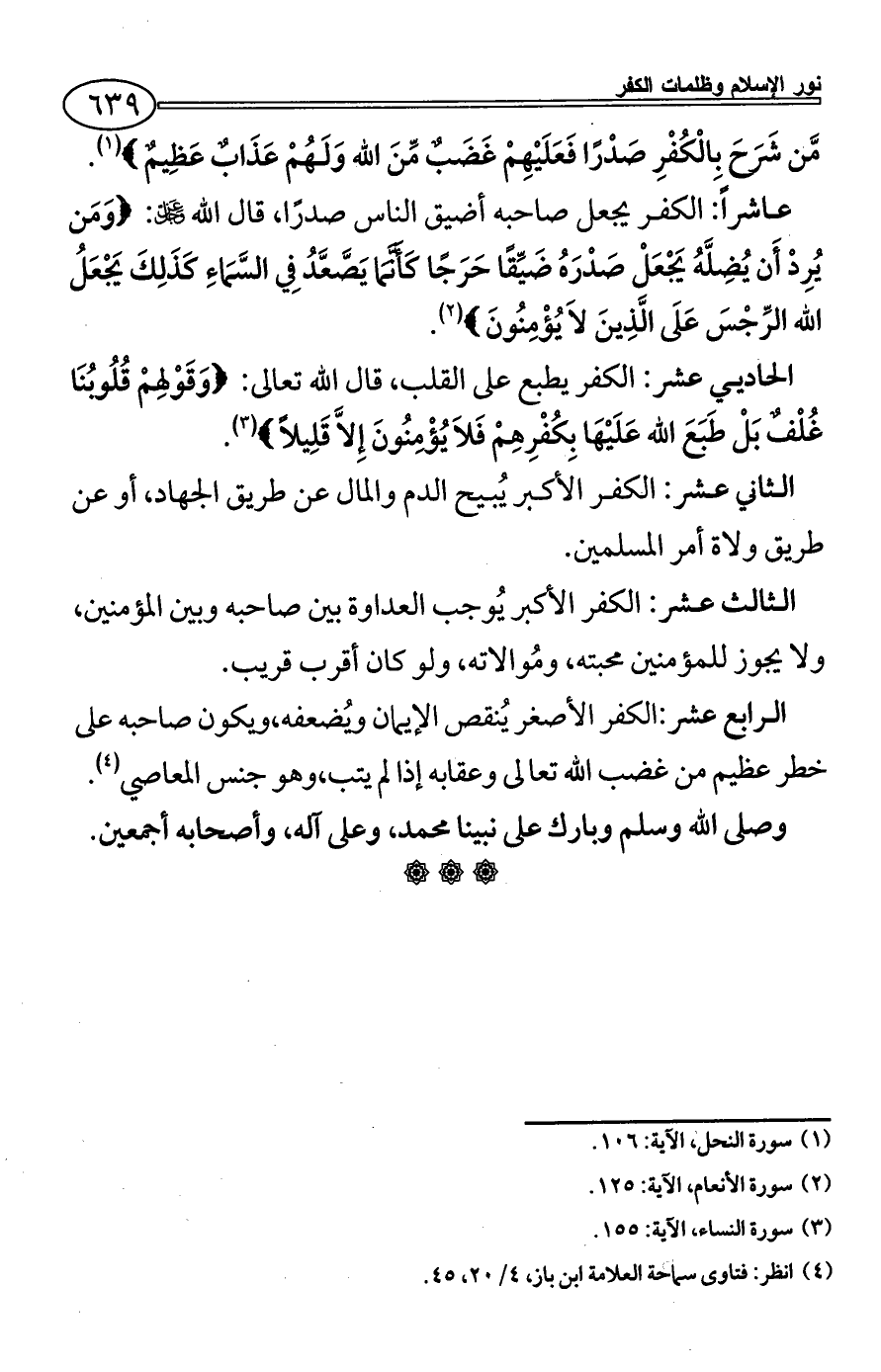 الثاني عشر: الكفر الأكبر يُبيح الدم والمال عن طريق الجهاد، أو عن طريق ولاة أمر المسلمين.