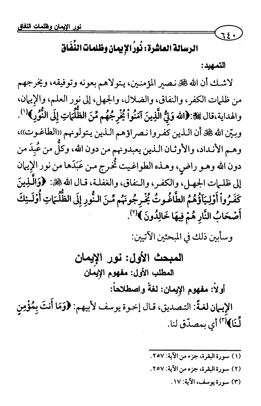 الرسالة العاشرة: نُورُ الإِيمان وظلمات النِّفَاق