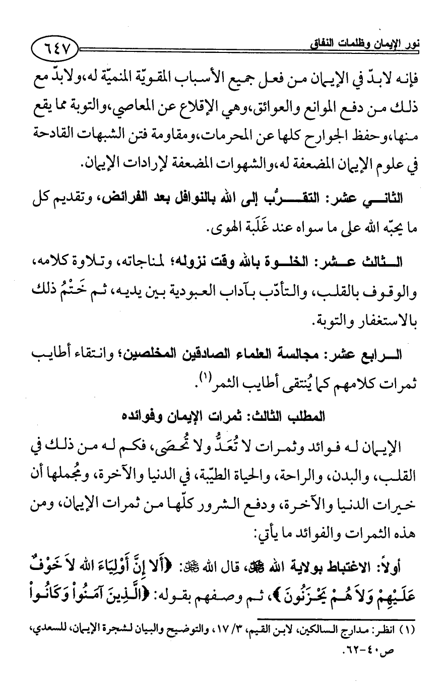 (¬1) انظر: مدارج السالكين، لابن القيم، 3/ 17، والتوضيح والبيان لشجرة الإيمان، للسعدي،