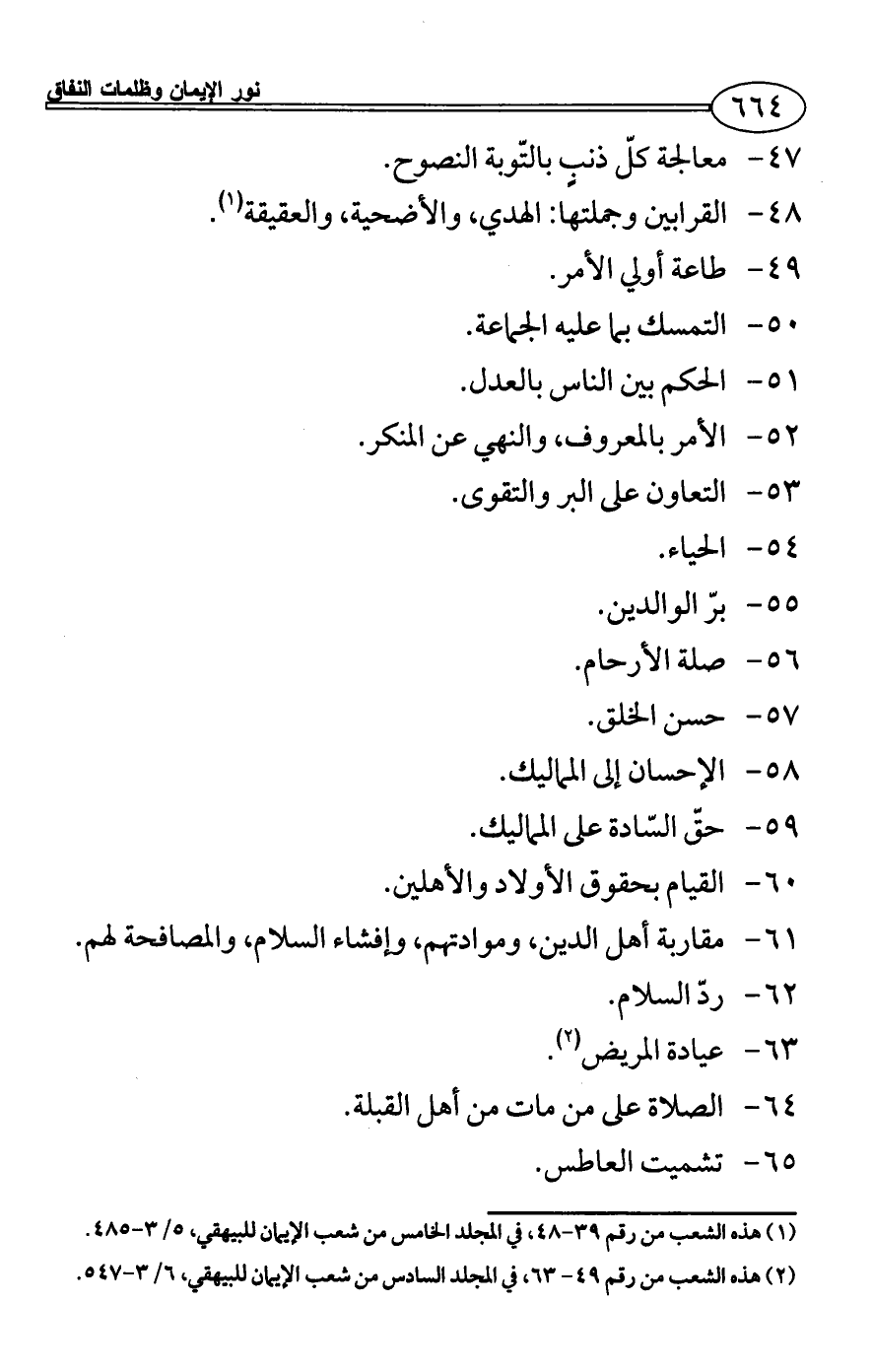 (¬2) هذه الشعب من رقم 49 - 63، في المجلد السادس من شعب الإيمان للبيهقي، 6/ 3 - 547.