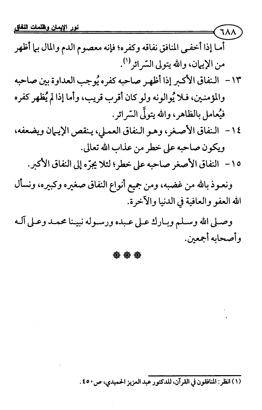 (¬1) انظر: المنافقون في القرآن، للدكتور عبد العزيز الحميدي، ص450.