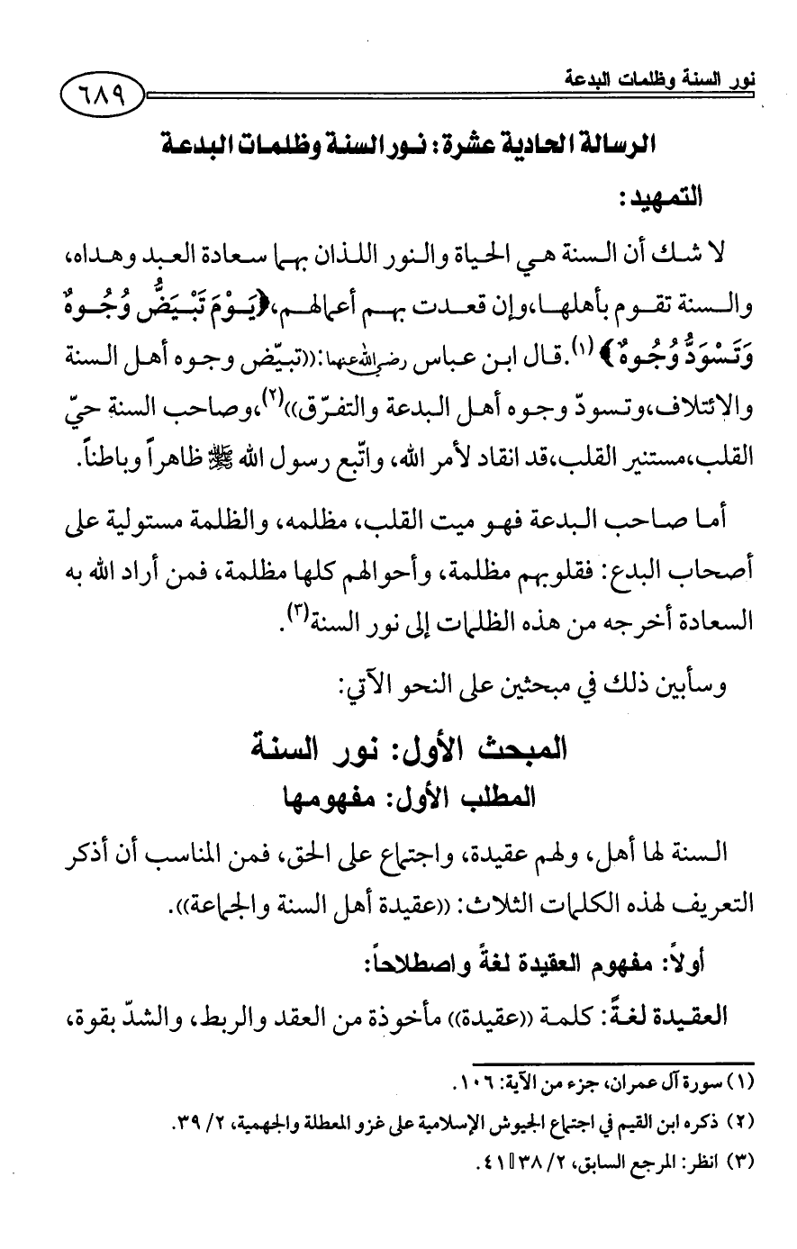 الرسالة الحادية عشرة: نور السنة وظلمات البدعة