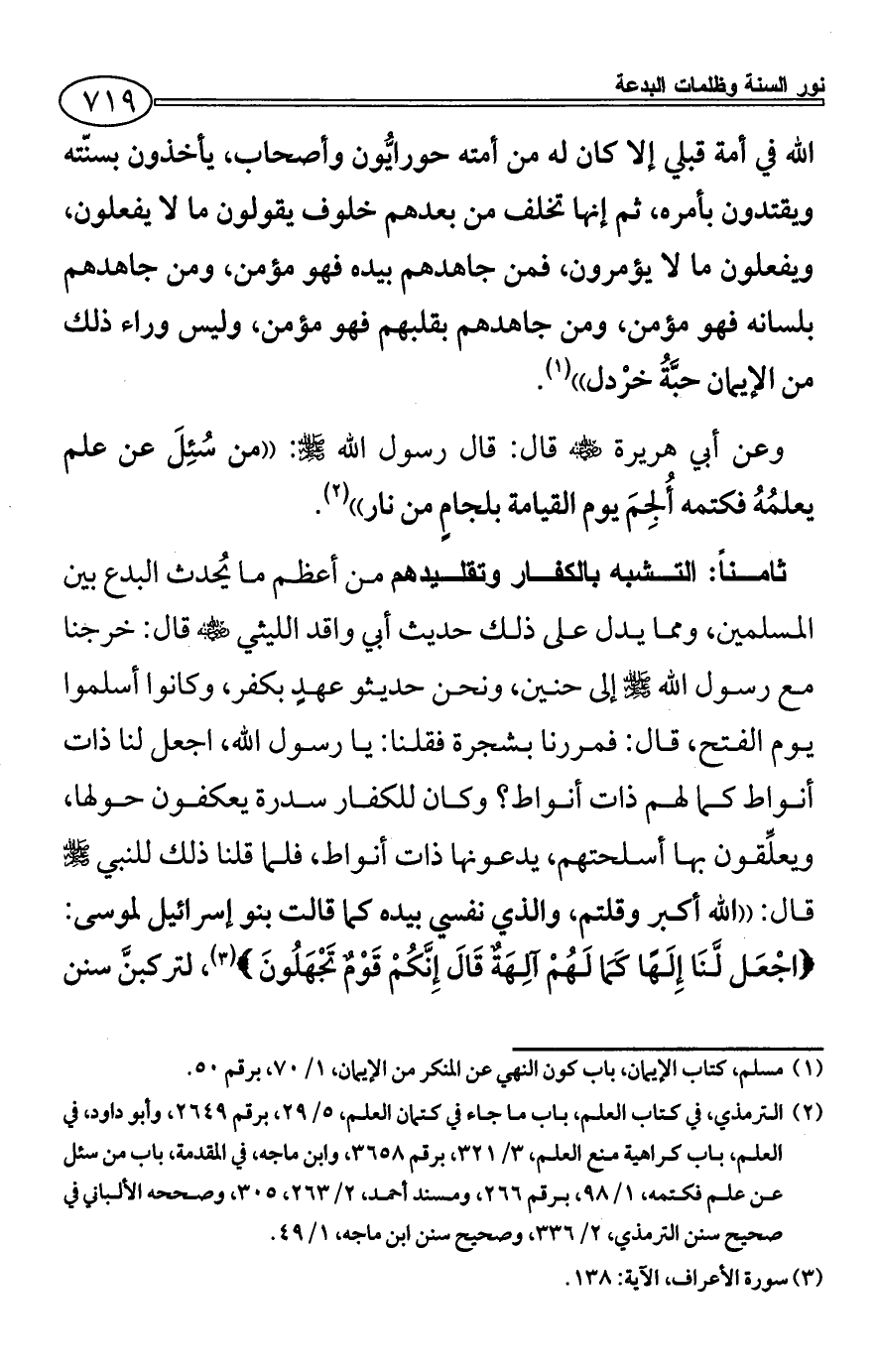 (¬1) مسلم، كتاب الإيمان، باب كون النهي عن المنكر من الإيمان، 1/ 70، برقم 50.