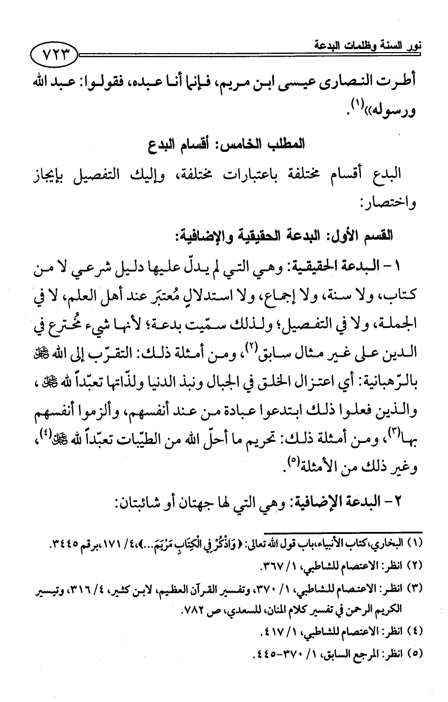 القسم الأول: البدعة الحقيقية والإضافية: