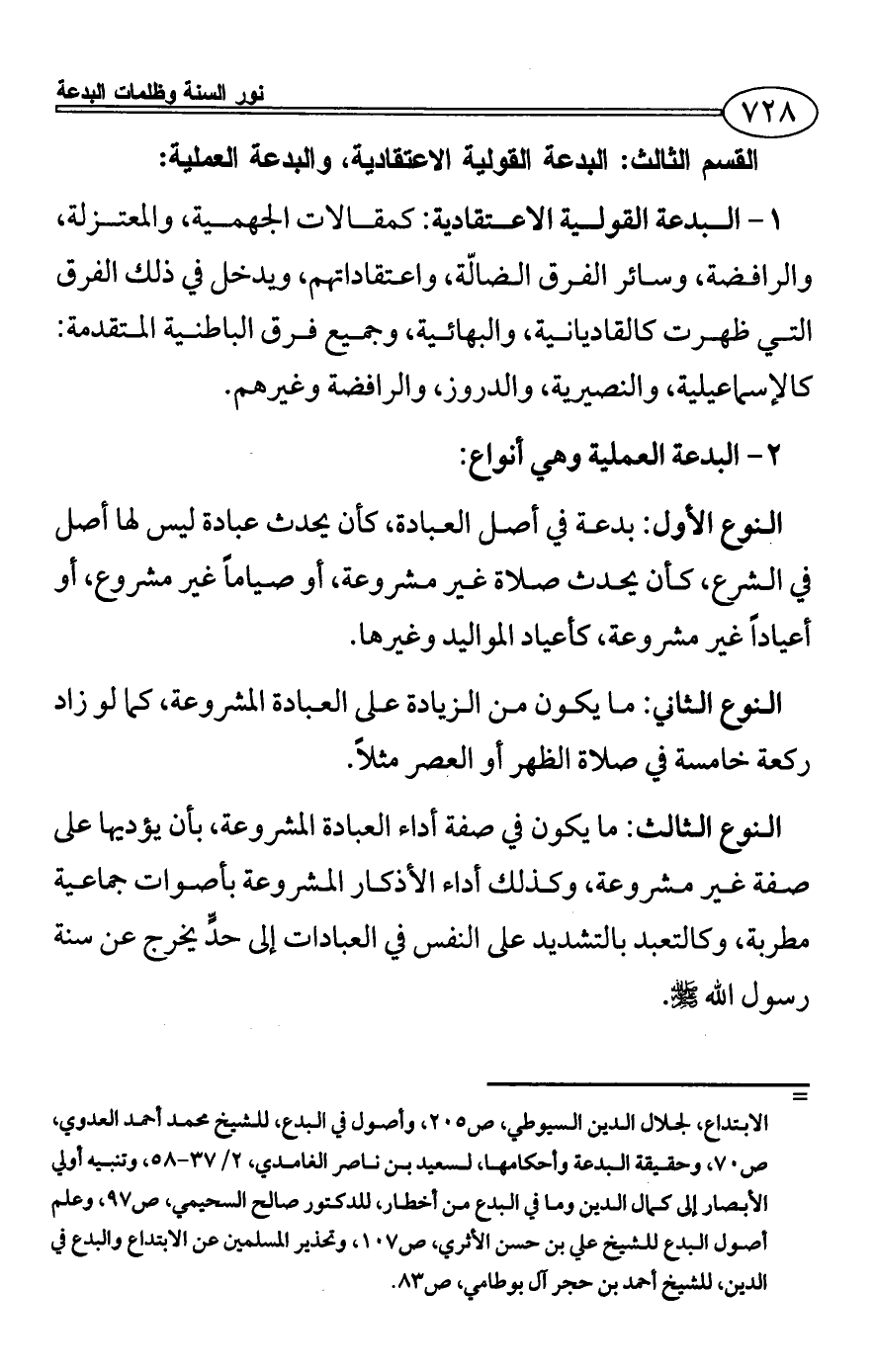 القسم الثالث: البدعة القولية الاعتقادية، والبدعة العملية: