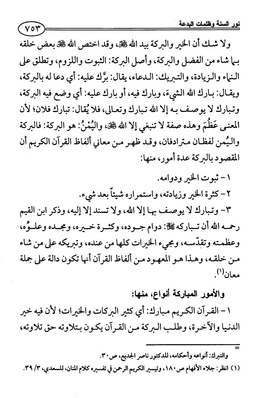 ولا شك أن الخير والبركة بيد الله - عز وجل -، وقد اختص الله - عز وجل - بعض خلقه بما شاء من الفضل والبركة، وأصل البركة: الثبوت واللزوم، وتطلق على النماء والزيادة، والتبريك: الدعاء، يقال: برَّك عليه: أي دعا له بالبركة، ويقال: بارك الله الشيءَ، وبارك فيه، أو بارك عليه: أي وضع فيه البركة، وتبارك لا يوصف به إلا الله تبارك وتعالى، فلا يُقال: تبارك فلان؛ لأن المعنى عَظُمَ وهذه صفة لا تنبغي إلا الله - عز وجل -، واليُمْنُ: هو البركة: فالبركة واليُمن لفظان مترادفان، وقد ظهر من معاني ألفاظ القرآن الكريم أن المقصود بالبركة عدة أمور، منها: