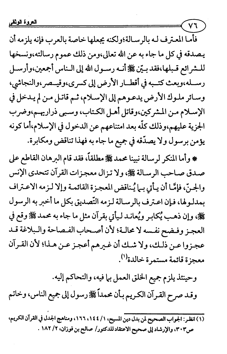 (¬1) انظر: الجواب الصحيح لمن بدل دين المسيح، 1/ 144، 166، ومناهج الجدل في القرآن الكريم، ص303، والإرشاد إلى صحيح الاعتقاد للدكتور/ صالح بن فوزان، 2/ 182.
