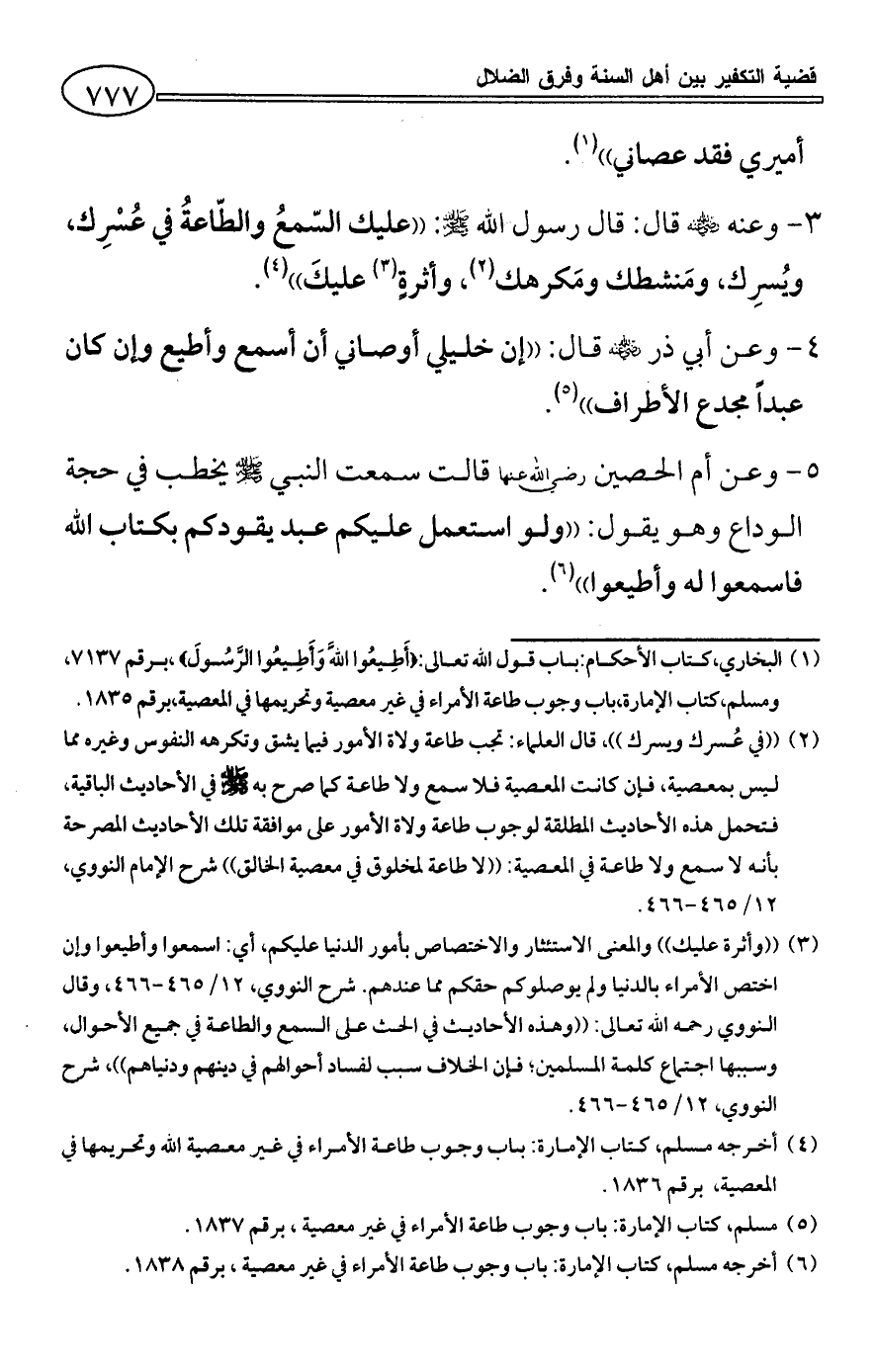 (¬5) مسلم، كتاب الإمارة: باب وجوب طاعة الأمراء في غير معصية، برقم 1837.