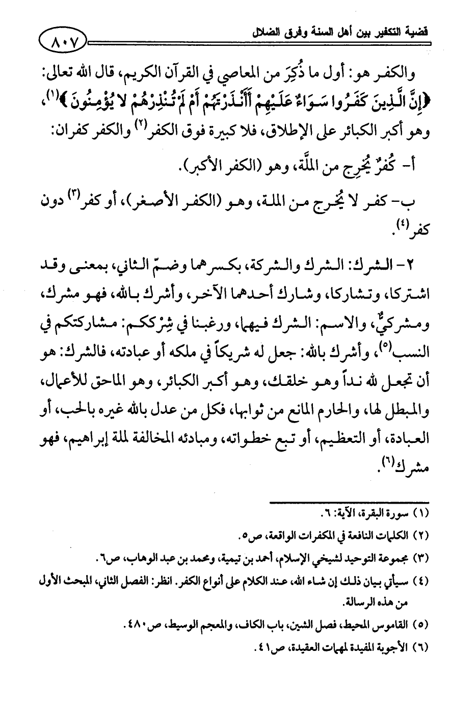 (¬4) سيأتي بيان ذلك إن شاء الله، عند الكلام على أنواع الكفر. انظر: الفصل الثاني، المبحث الأول من هذا الكتاب.