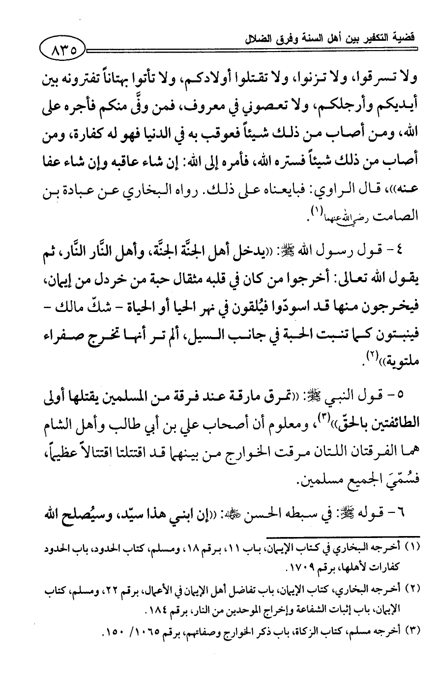 (¬3) أخرجه مسلم، كتاب الزكاة، باب ذكر الخوارج وصفاتهم، برقم 1065/ 150.