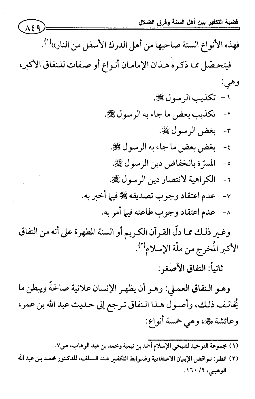 (¬2) انظر: نواقض الإيمان الاعتقادية وضوابط التكفير عند السلف، للدكتور محمد بن عبد الله الوهيبي، 2/ 160.