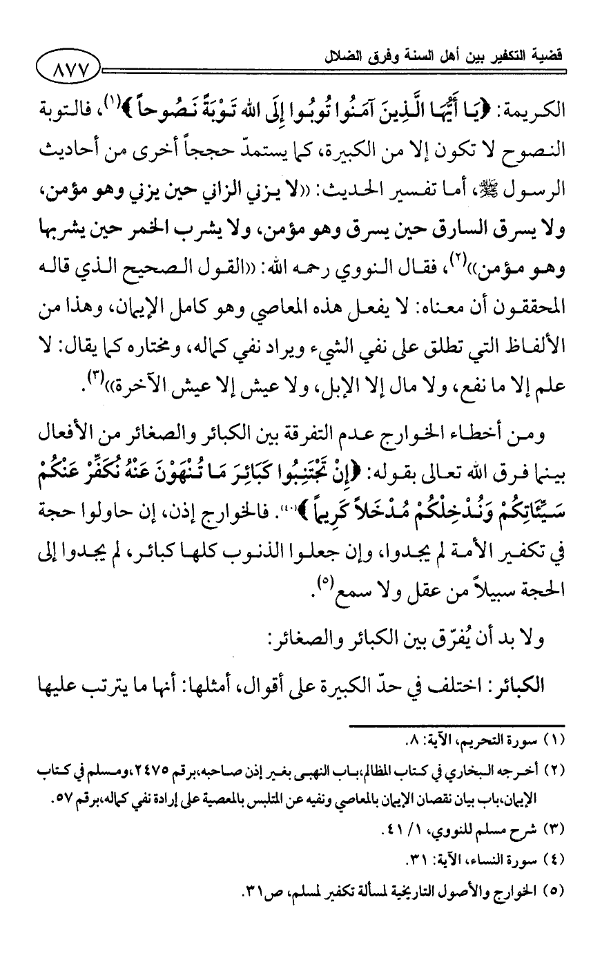 (¬4) الخوارج والأصول التاريخية لمسألة تكفير لمسلم، ص31.