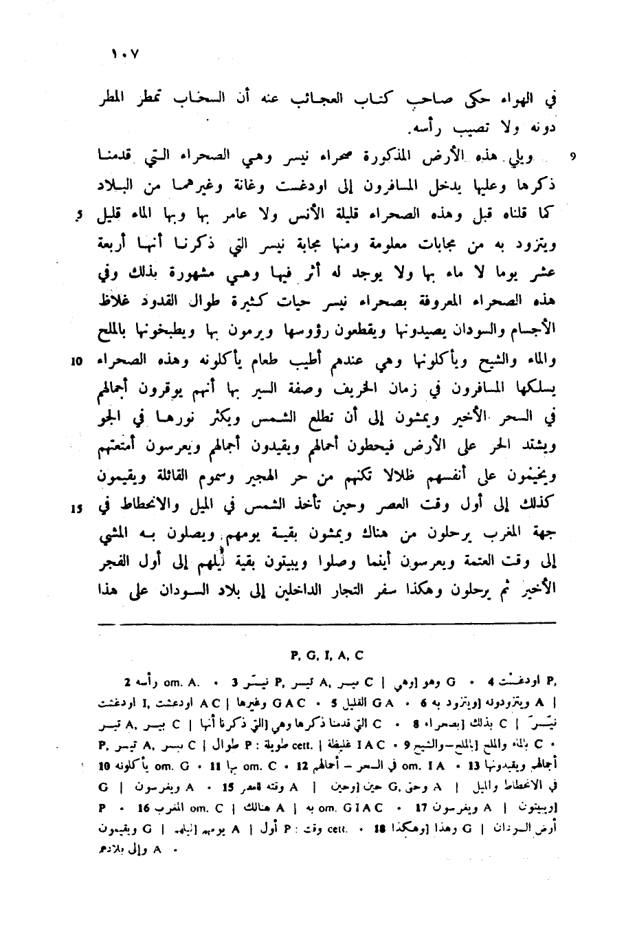ويلي هذه الأرض المذكورة صحراء نيسر وهي الصحراء التي قدمنا ذكرها وعليها يدخل المسافرون إلى اودغست وغانة وغيرهما من البلاد كما قلناه قبل وهذه الصحراء قليلة الأنس ولا عامر بها وبها الماء قليل ويتزود به من مجابات معلومة ومنها مجابة نيسر التي ذكرنا أنها أربعة عشر يوما لا ماء بها ولا يوجد له أثر فيها وهي مشهورة بذلك وفي هذه الصحراء المعروفة بصحراء نيسر حيات كثيرة طوال القدود غلاظ الأجسام والسودان يصيدونها ويقطعون رؤوسها ويرمون بها ويطبخونها بالملح والماء والشيخ ويأكلونها وهي عندهم أطيب طعام يأكلونه وهذه الصحراء يسلكها المسافرون في زمان الخريف وصفة السير بها أنهم يوقرون أجمالهم في السحر الأخير ويمشون إلى أن تطلع الشمس ويكثر نورها في الجو ويشتد الحر على الأرض فيحطون أحمالهم ويقيدون أجمالهم ويعرسون أمتعتهم ويخيمون على أنفسهم ضلالا تكنهم من حر الهجير وسموم القائلة ويقيمون كذلك إلى أول وقت العصر وحين تأخذ الشمس في الميل والانحطاط في جهة المغرب يرحلون من هناك ويمشون بقية يومهم ويصلون به المشي إلى وقت العتمة ويعرسون أينما وصلوا ويبيتون بقية ليلهم إلى أول الفجر الأخير ثم يرحلون وهكذا سفر التجار الداخلين إلى بلاد السودان على هذا