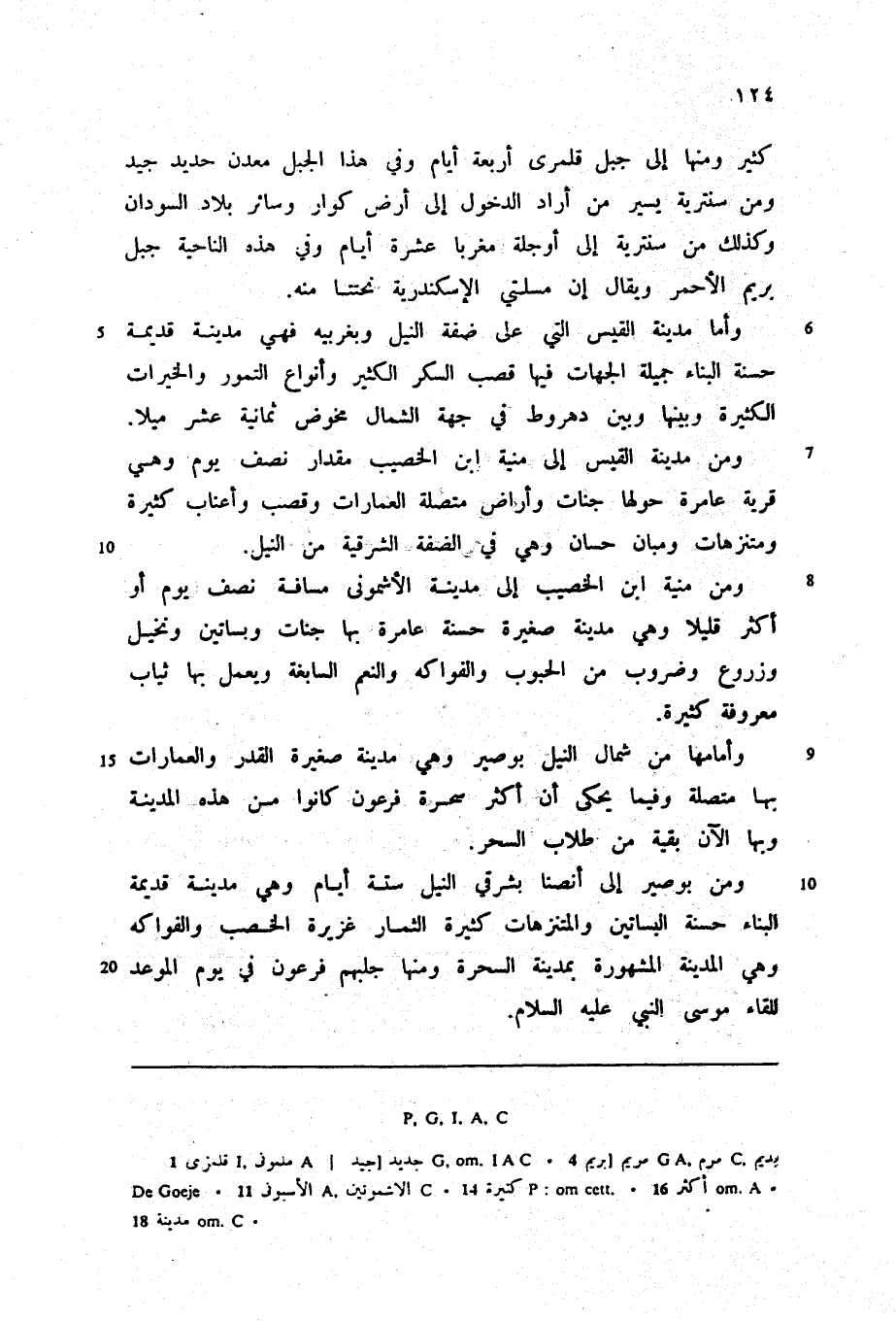 ومن مدينة القيس إلى منية ابن الخصيب مقدار نصف يوم وهي قرية عامرة حولها جنات وأراض متصلة العمارات وقصب وأعناب كثيرة ومتنزهات ومبان حسان وهي في الضفة الشرقية من النيل.