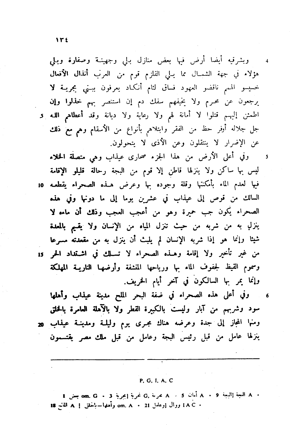 وبشرقيه أيضا أرض فيها بعض منازل بلي وجهينة وصفارة ويلي هؤلاء في جهة الشمال مما يلي القلزم قوم من العرب أنذال الأفعال خسيسو الهمم ناقضو العهود فساق لئام أنكاد يعرفون ببني بجرية لا يرجعون عن محرم ولا يخيفهم سفك دم إن استنصر بهم خذلوا وإن اطمئن إليهم قتلوا لا أمانة لهم ولا رعاية ولا ديانة وقد أعطاهم الله جل جلاله أوفر حظ من الفقر وابتلاهم بأنواع من الأسقام وهم مع ذلك عن الإضرار لا ينتقلون وعن الأذى لا يتحولون.