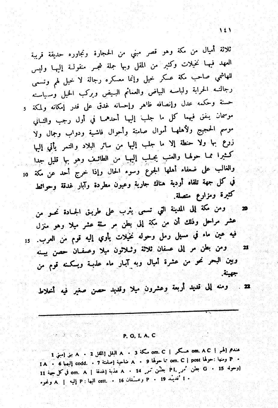 ومن مكة إلى المدينة التي تسمى يثرب على طريق الجادة نحو من عشر مراحل وذلك أن من مكة إلى بطن مر ستة عشر ميلا وهو منزل فيه عين ماء في مسيل رمل وحوله نخيلات يأوي إليه قوم من العرب.