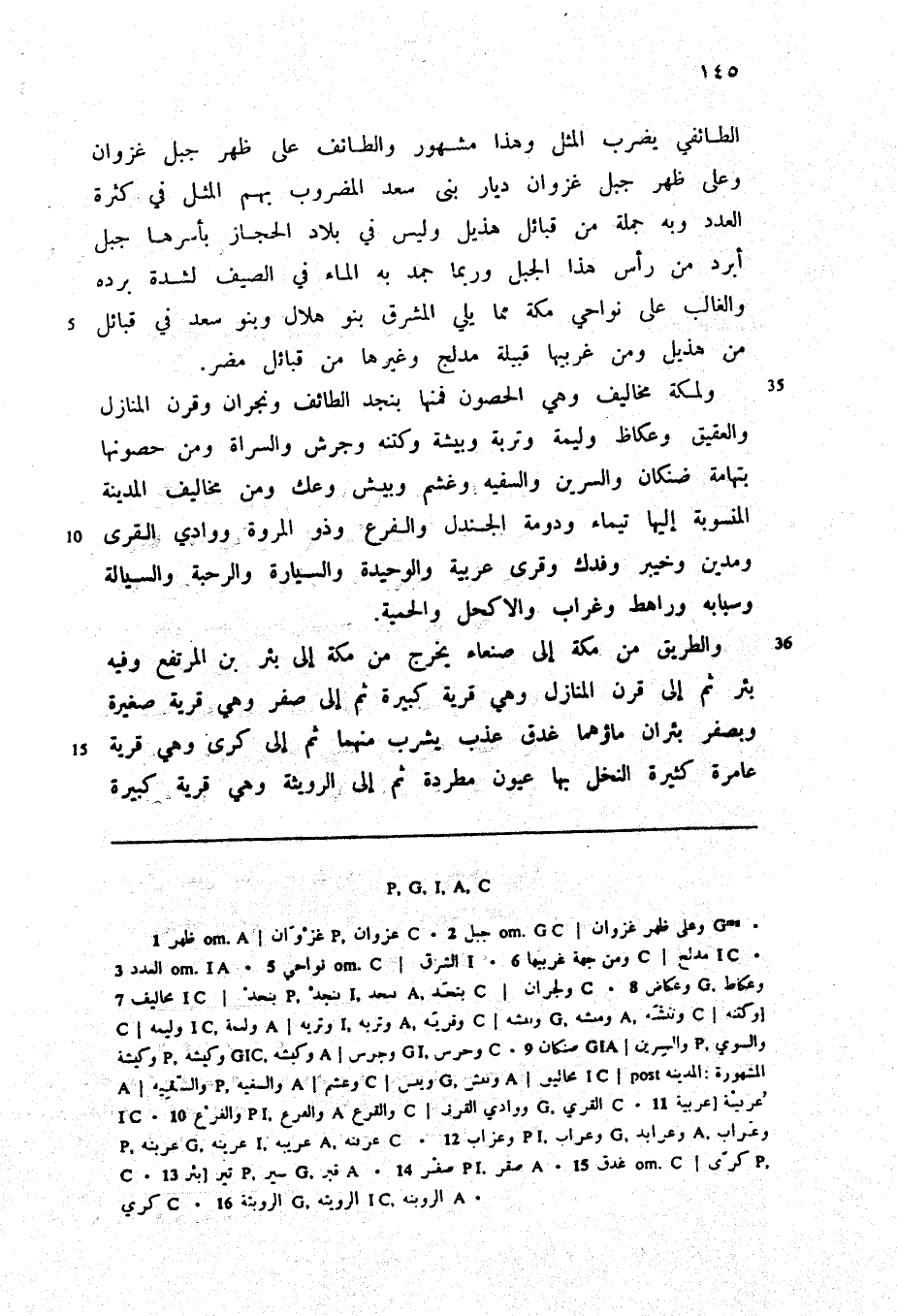 الطائفي يضرب المثل وهذا مشهور والطائف على ظهر جبل غزوان وعلى ظهر جبل غزوان ديار بنى سعد المضروب بهم المثل في كثرة العدد وبه جملة من قبائل هذيل وليس في بلاد الحجاز بأسرها جبل أبرد من رأس هذا الجبل وربما جمد به الماء في الصيف لشدة برده والغالب على نواحي مكة مما يلي المشرق بنو هلال وبنو سعد في قبائل من هذيل ومن غربيها قبيلة مدلج وغيرها من قبائل مضر.