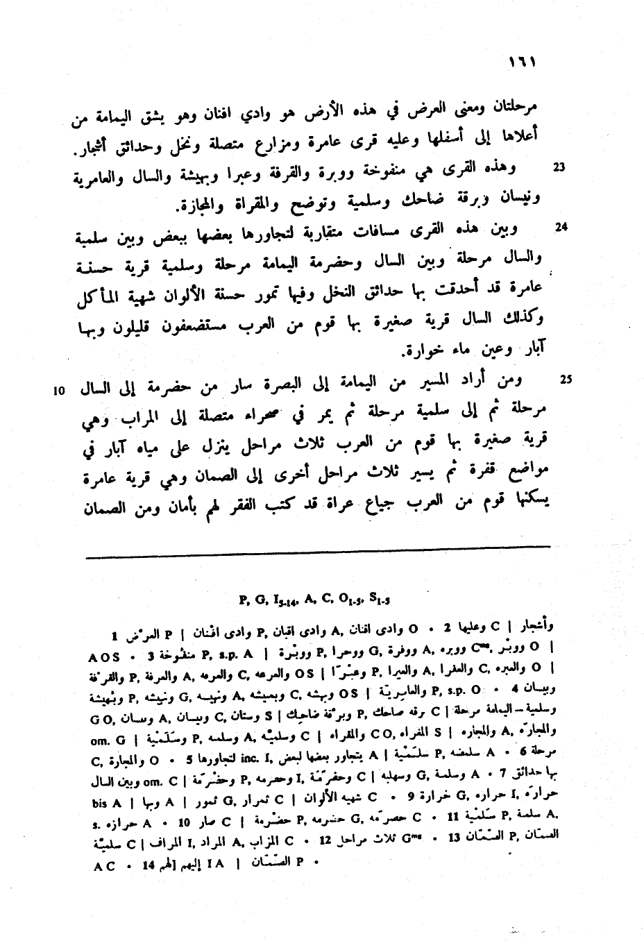 ومن أراد المسير من اليمامة إلى البصرة سار من حضرمة إلى السال مرحلة ثم إلى سلمية مرحلة ثم يمر في صحراء متصلة إلى المراب وهي قرية صغيرة بها قوم من العرب ثلاث مراحل ينزل على مياه آبار في مواضع قفرة ثم يسير ثلاث مراحل أخرى إلى الصمان وهي قرية عامرة يسكنها قوم من العرب جياع عراة قد كتب الفقر لهم بأمان ومن الصمان