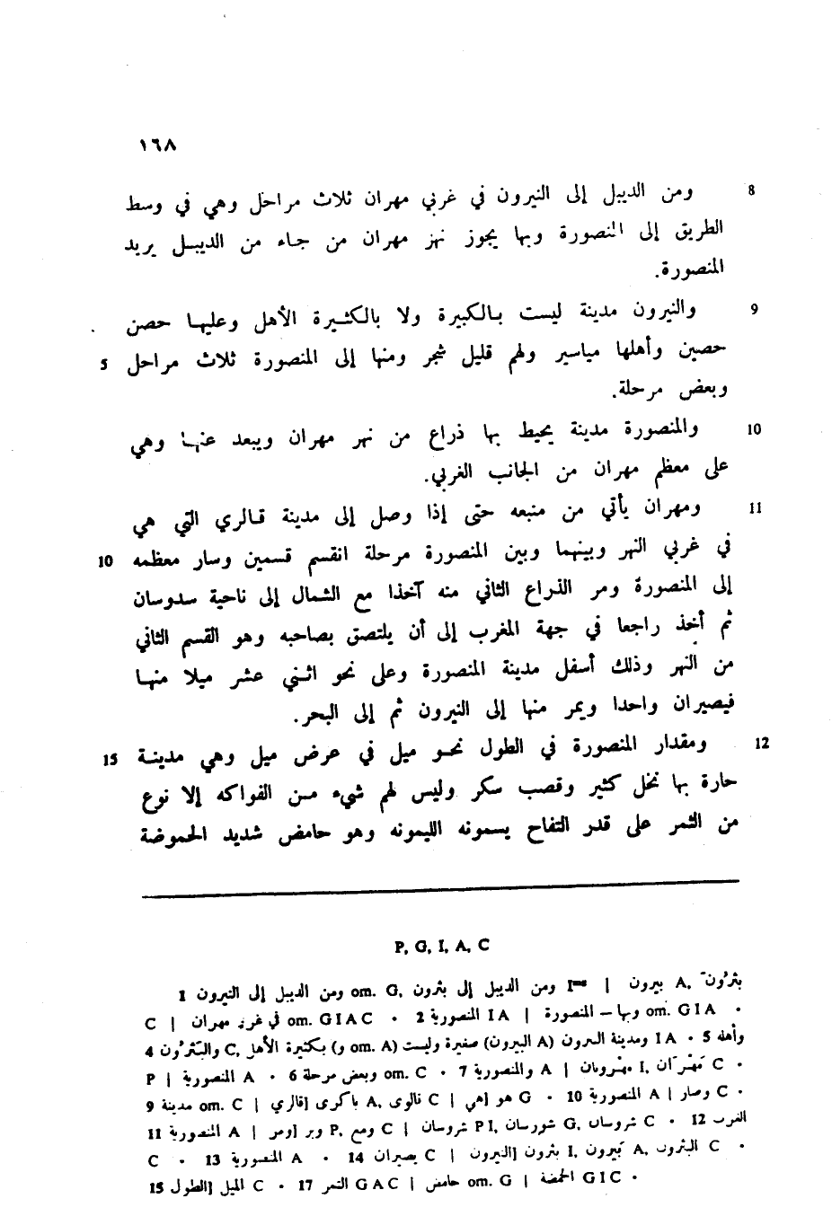ومن الديبل إلى النيرون في غربي مهران ثلاث مراحل وهي في وسط الطريق إلى المنصورة وبها يجوز نهر مهران من جاء من الديبل يريد المنصورة.