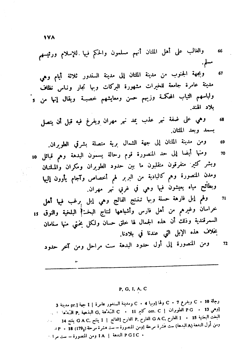 ومنها أيضا إلى حد المنصورة قوم رحالة يسمون البدهة وهم قبائل وبشر كثير متفرقون متقلبون ما بين حدود الطويران ومكران والملتان ومدن المنصورة وهم كالبادية من البربر لهم أخصاص وآجام يأوون إليها وبطائح مياه يعيشون فيها وهي في غربي نهر مهران.