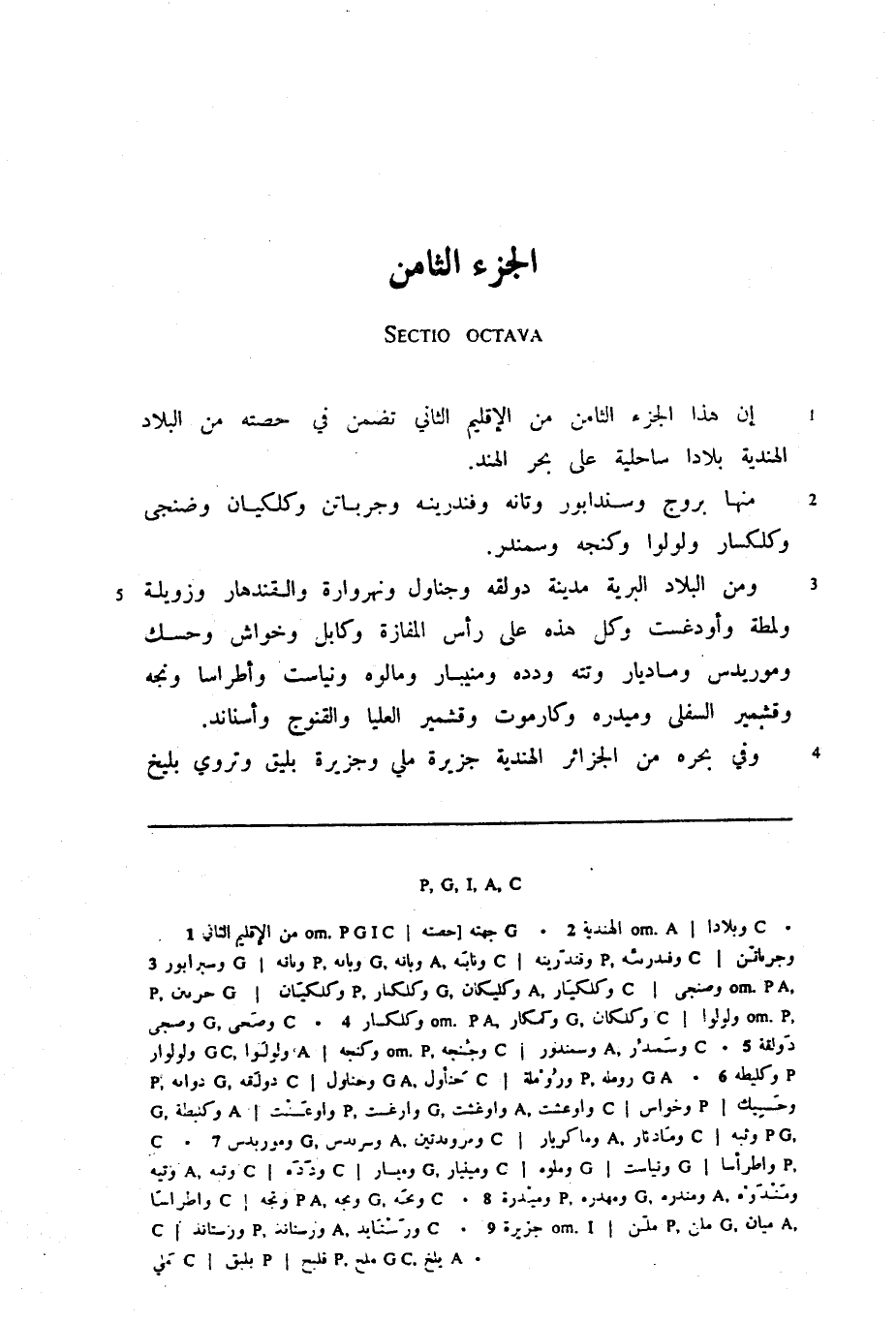إن هذا الجزء الثامن من الإقليم الثاني تضمن في حصته من البلاد الهندية بلادا ساحلية على بحر الهند.