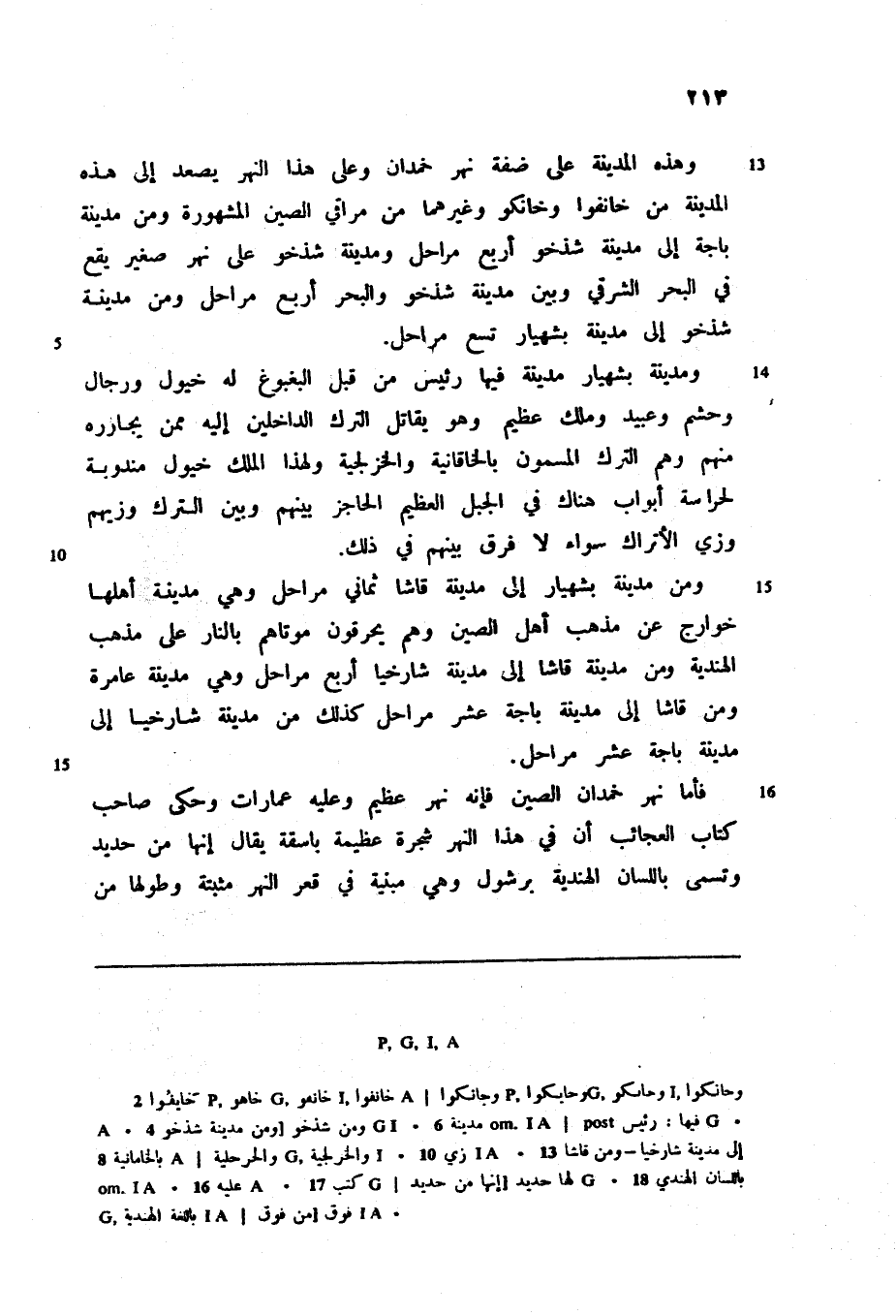 ومن مدينة بشهيار إلى مدينة قاشا ثماني مراحل وهي مدينة أهلها خوارج عن مذهب أهل الصين وهم يحرقون موتاهم بالنار على مذهب الهندية ومن مدينة قاشا إلى مدينة شارخيا أربع مراحل وهي مدينة عامرة ومن قاشا إلى مدينة باجة عشر مراحل كذلك من مدينة شارخيا إلى مدينة باجة عشر مراحل.