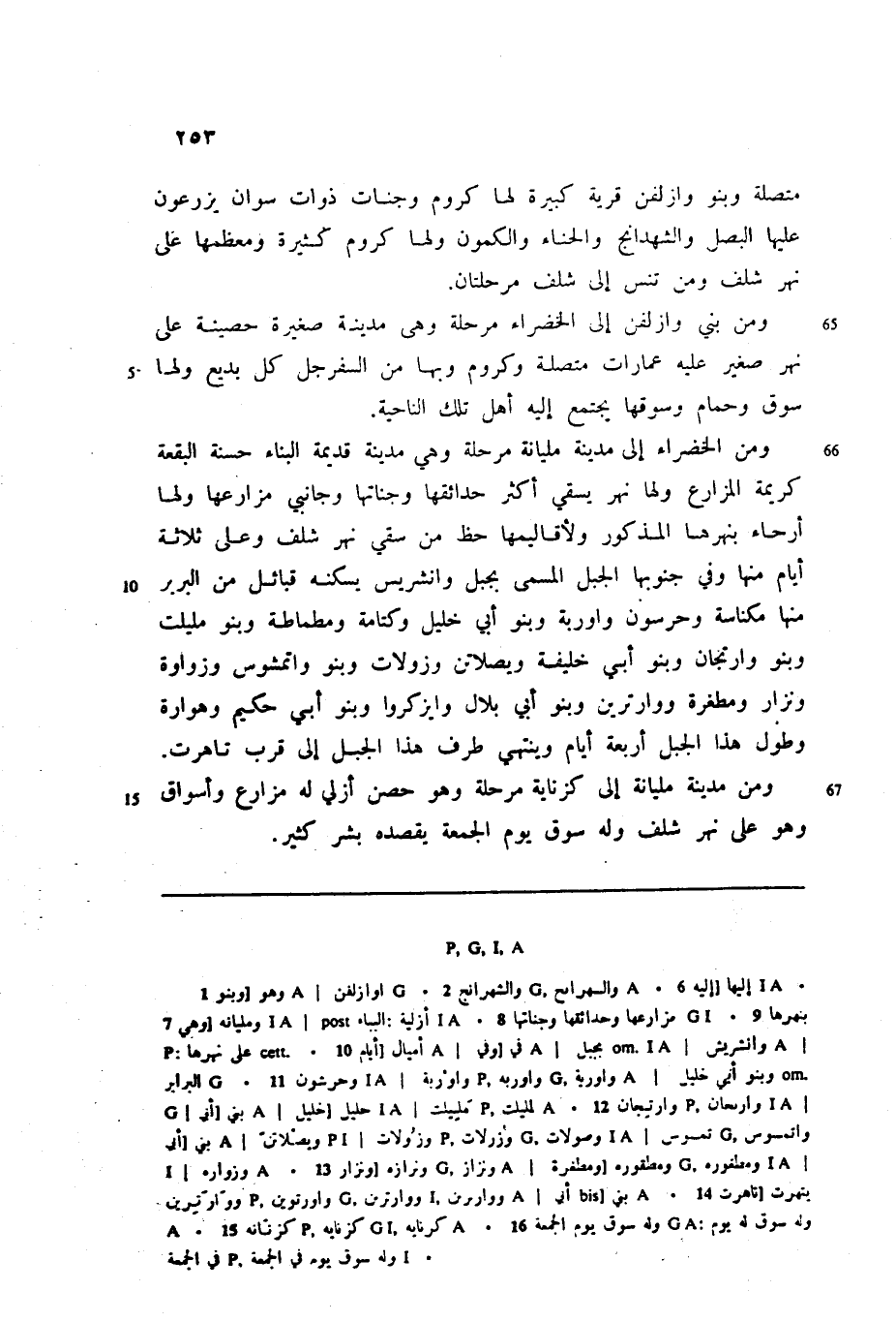 متصلة وبنو وازلفن قرية كبيرة لها كروم وجنات ذوات سوان يزرعون عليها البصل والشهدانج والحناء والكمون ولها كروم كثيرة ومعظمها على نهر شلف ومن تنس إلى شلف مرحلتان.