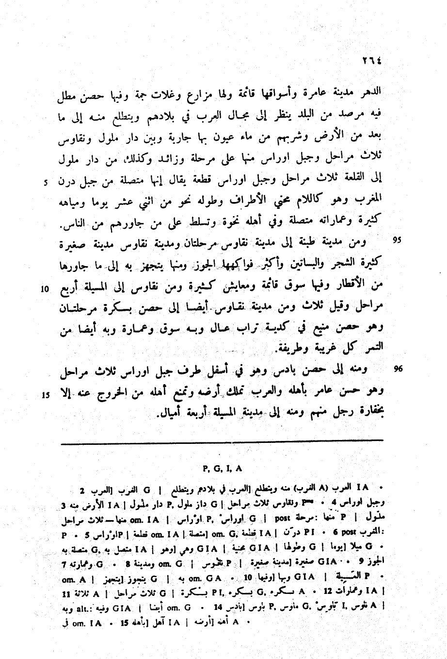 ومنه إلى حصن بادس وهو في أسفل طرف جبل اوراس ثلاث مراحل وهو حسن عامر بأهله والعرب تملك أرضه وتمنع أهله من الخروج عنه إلا بخفارة رجل منهم ومنه إلى مدينة المسيلة أربعة أميال.