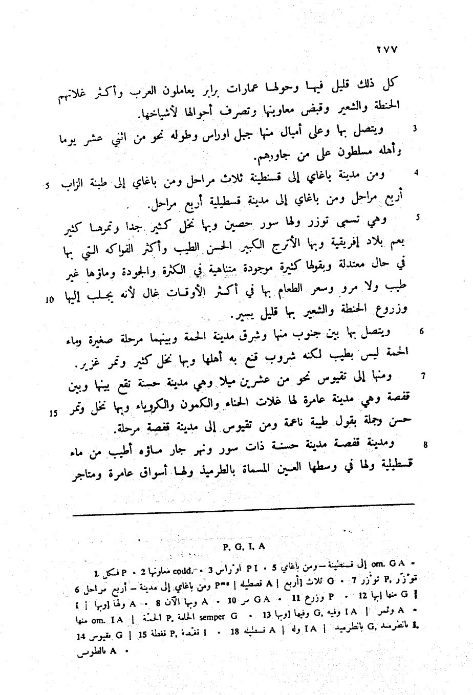 ومن مدينة باغاي إلى قسنطينة ثلاث مراحل ومن باغاي إلى طبنة الزاب أربع مراحل ومن باغاي إلى مدينة قسطيلية أربع مراحل.