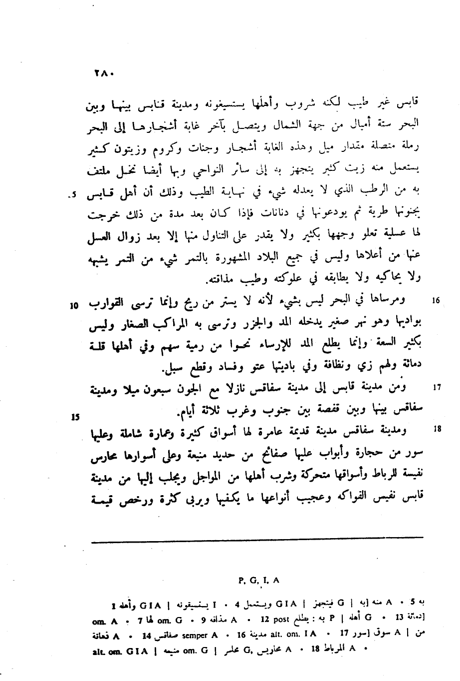 ومن مدينة قابس إلى مدينة سفاقس نازلا مع الجون سبعون ميلا ومدينة سفاقس بينها وبين قفصة بين جنوب وغرب ثلاثة أيام.