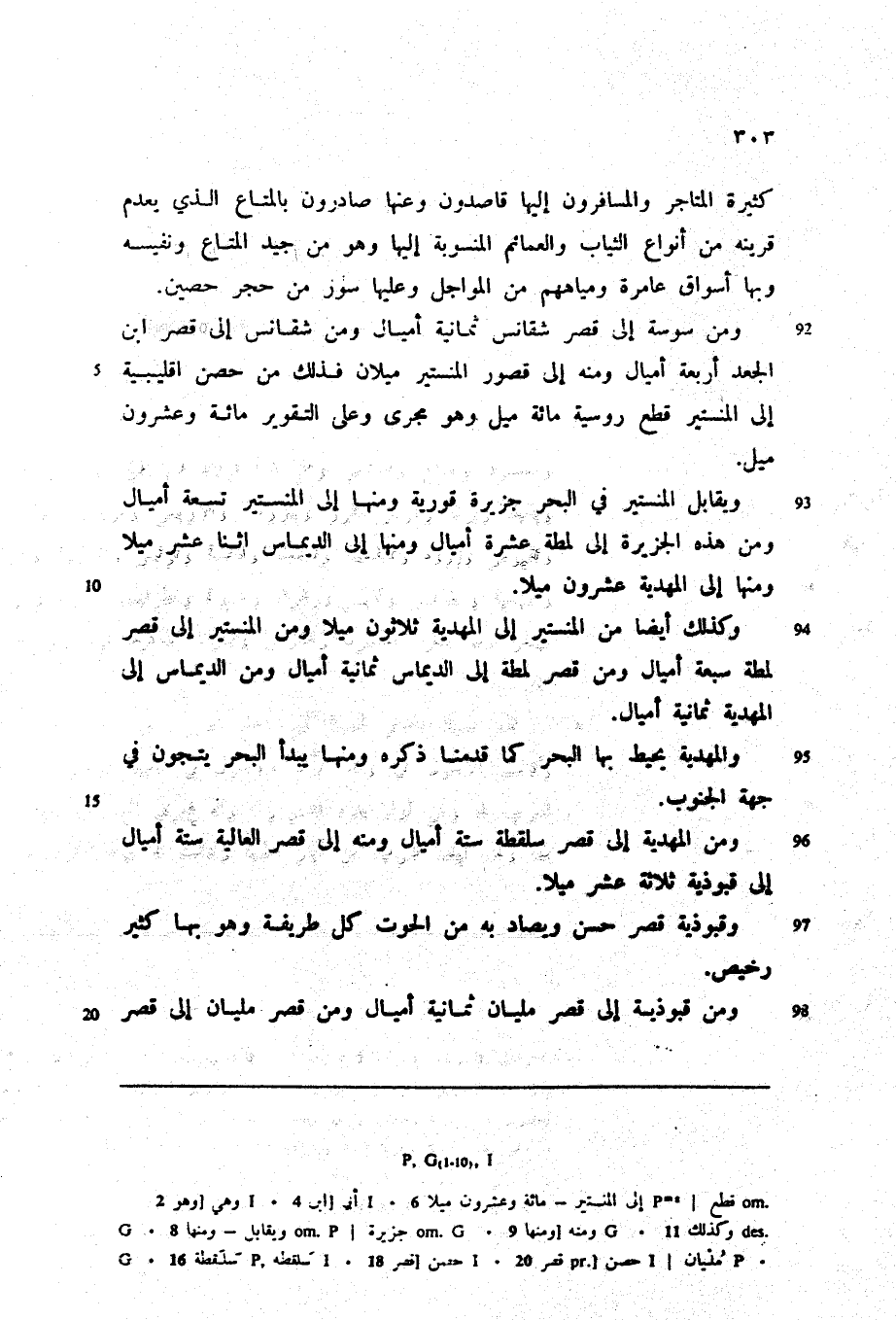 وكذلك أيضا من المنستير إلى المهدية ثلاثون ميلا ومن المنستير إلى قصر لمطة سبعة أميال ومن قصر لمطة إلى الديماس ثمانية أميال ومن الديماس إلى المهدية ثمانية أميال.