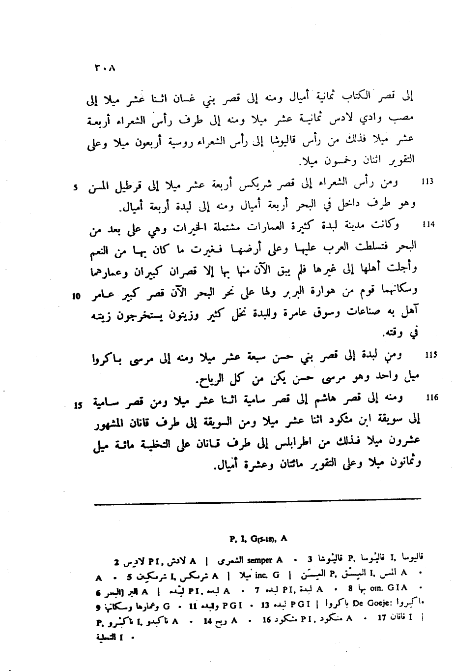 إلى قصر الكتاب ثمانية أميال ومنه إلى قصر بني غسان اثنا عشر ميلا إلى مصب وادي لادس ثمانية عشر ميلا ومنه إلى طرف رأس الشعراء أربعة عشر ميلا فذلك من رأس قاليوشا إلى رأس الشعراء روسية أربعون ميلا وعلى التقوير اثنان وخمسون ميلا.