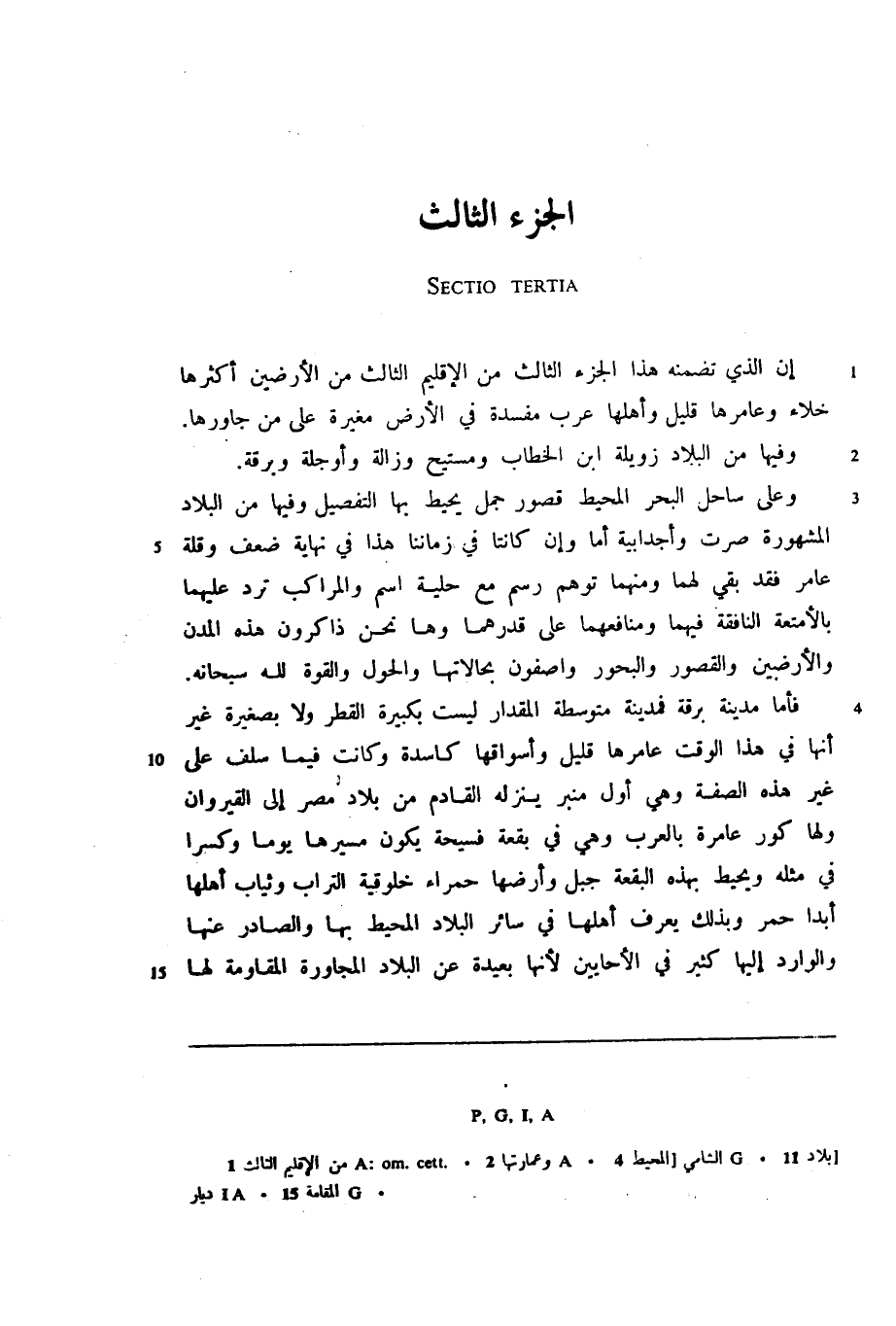 إن الذي تضمنه هذا الجزء الثالث من الإقليم الثالث من الأرضين أكثرها خلاء وعامرها قليل وأهلها عرب مفسدة في الأرض مغيرة على من جاورها.