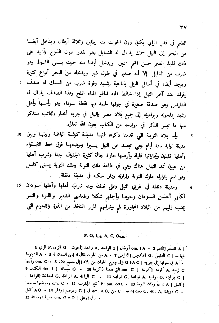 الطعم في قدر الراي يكون وزن الحوت منه رطلين وثلاثة أرطال ويدخل أيضا من البحر إلى النيل سمك يقال له الشابل وهو بقدر طول الذراع وأزيد على ذلك لذيذ الطعم حسن اللحم سمين ويدخل أيضا منه حوت يسمى الشبوط وهو ضرب من الشابل إلا أنه صغير في طول شبر ويدخله من البحر أنواع كثيرة ويوجد أيضا في أسفل النيل بناحية رشيد وفوة ضرب من السمك له صدف يتولد عند آخر النيل إذا خالط الماء الحلو الماء الملح وهذا الصدف يقال له الدلينس وهو صدفة صغيرة في جوفها لحمة فيها نقطة سوداء وهو رأسها وأهل رشيد يملحونه ويرفعونه إلى جميع بلاد مصر وللنيل في جريه أخبار وعجائب سنذكر منها ما تيسر للذكر في موضعه من الكتاب بعون الله تعالى.