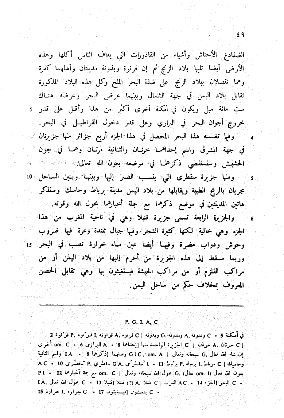 ومنها جزيرة سقطرى التي ينسب الصبر إليها وبينها وبين الساحل مجريان بالريح الطيبة ويقابلها من بلاد اليمن مدينة برباط وحاسك وسنذكر هاتين المدينتين في موضع ذكرهما مع جملة أخبارهما بحول الله وقوته.