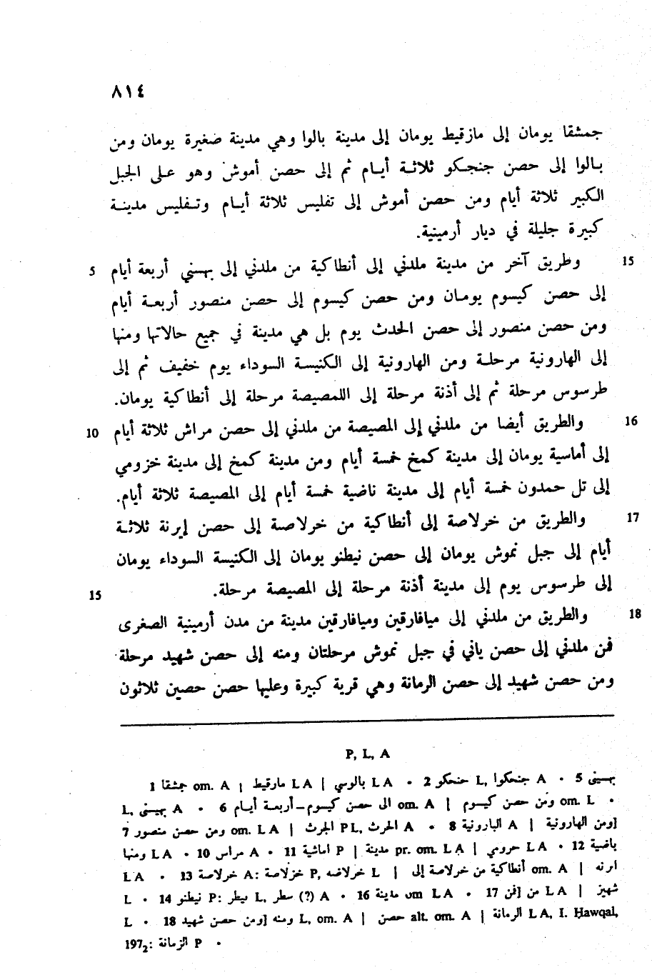 والطريق أيضا من ملدني إلى المصيصة من ملدني إلى حصن مراش ثلاثة أيام إلى أماسية يومان إلى مدينة كمخ خمسة أيام ومن مدينة كمخ إلى مدينة خزومي إلى تل حمدون خمسة أيام إلى مدينة ناضية خمسة أيام إلى المصيصة ثلاثة أيام.
