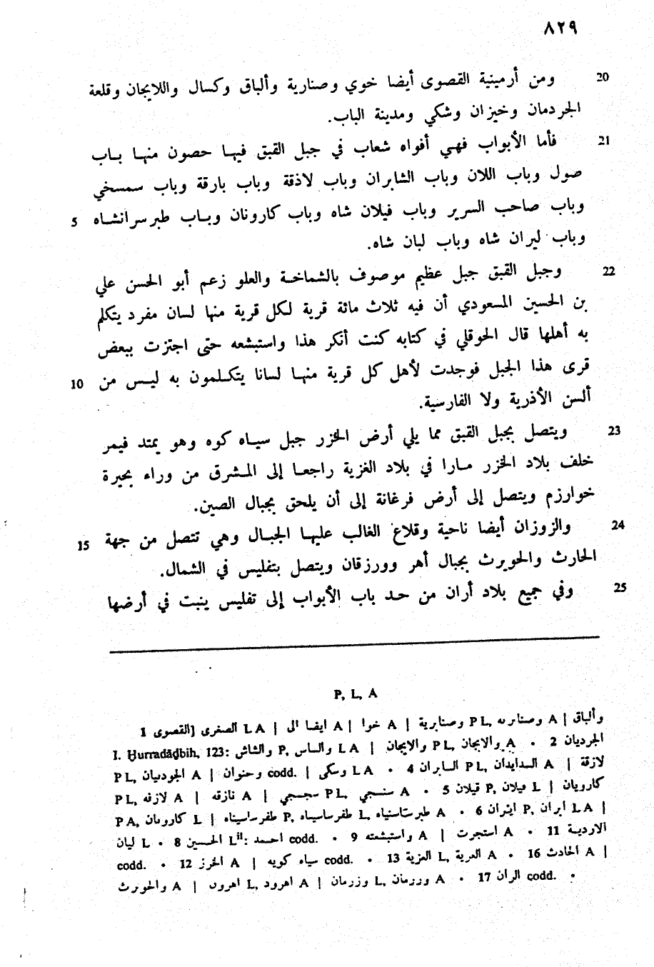 فأما الأبواب فهي أفواه شعاب في جبل القبق فيها حصون منها باب صول وباب اللان وباب الشابران وباب لاذقة وباب بارقة وباب سمسخي وباب صاحب السرير وباب فيلان شاه وباب كارونان وباب طبر سرانشاه وباب ليران شاه وباب لبان شاه.
