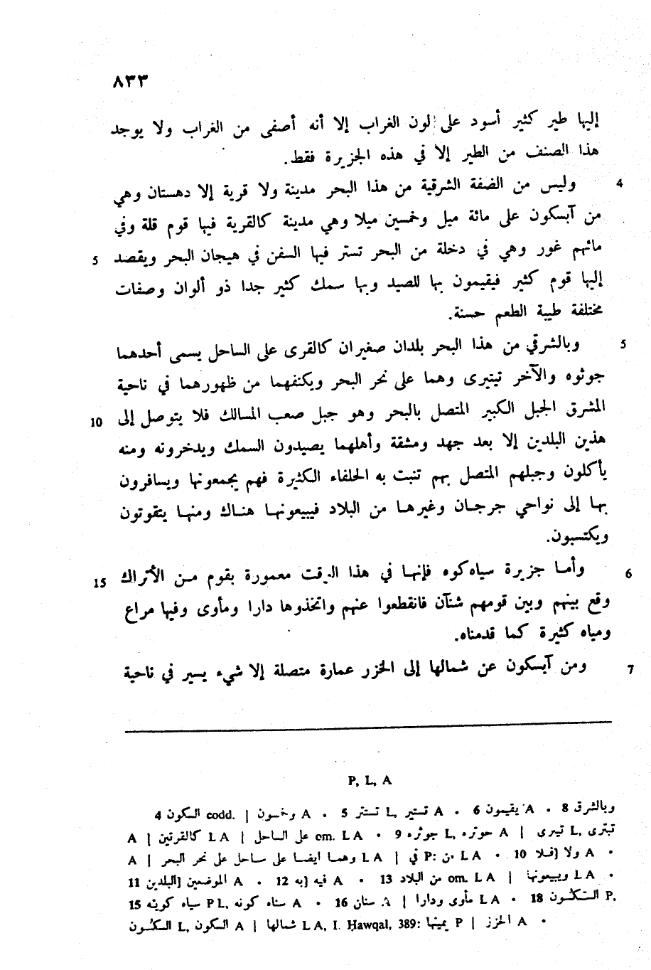 إليها طير كثير أسود على لون الغراب إلا أنه أصفى من الغراب ولا يوجد هذا الصنف من الطير إلا في هذه الجزيرة فقط.