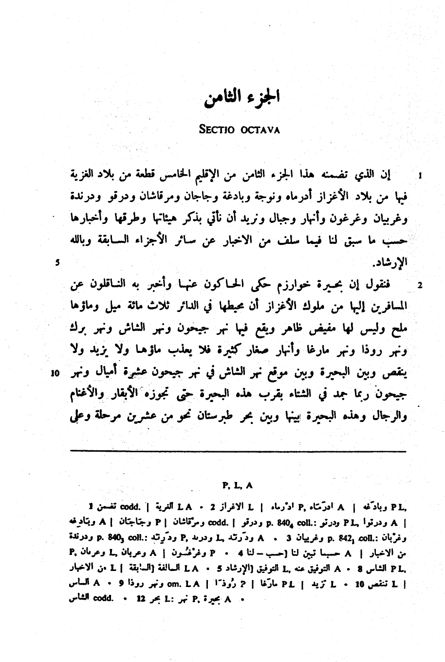 إن الذي تضمنه هذا الجزء الثامن من الإقليم الخامس قطعة من بلاد الغزية فيها من بلاد الأغزاز أدرماه وتوجة وبادغة وجاجان ومرقاشان ودرقو ودزندة وغربيان وغرغون وأنهار وجبال ونريد أن نأتي بذكر هيئاتها وطرقها وأخبارها حسب ما سبق لنا فيما سلف من الاخبار عن سائر الأجزاء السابقة وبالله الإرشاد.