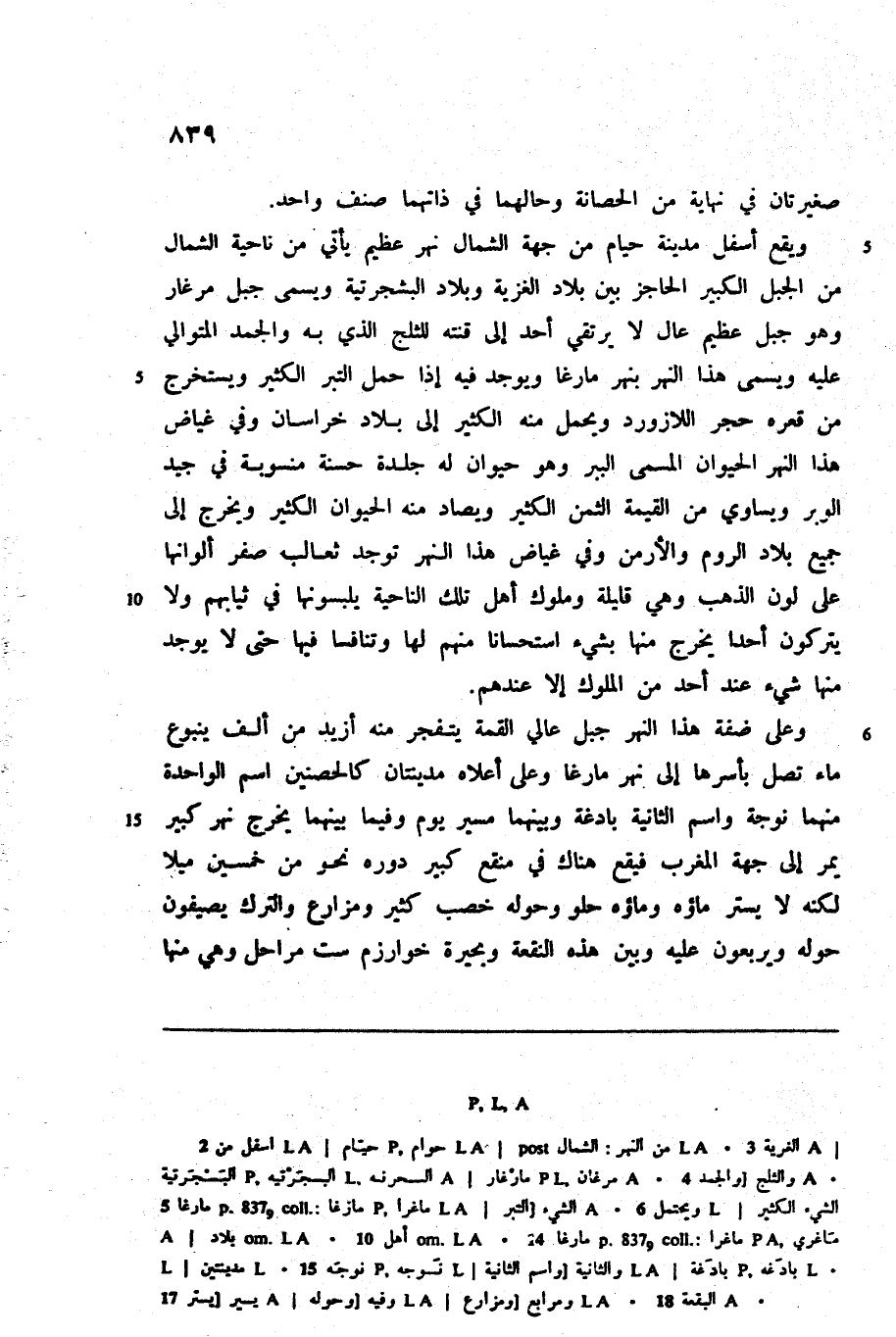 ويقع أسفل مدينة حيام من جهة الشمال نهر عظيم يأتي من ناحية الشمال من الجبل الكبير الحاجز بين بلاد الغزية وبلاد البشجرتية ويسمى جبل مرغار وهو جبل عظيم عال لا يرتقي أحد إلى قنته للثلج الذي به والجمد المتوالي عليه ويسمى هذا النهر بنهر مارغا ويوجد فيه إذا حمل التبر الكثير ويستخرج من قعره حجر اللازورد ويحمل منه الكثير إلى بلاد خراسان وفي غياض هذا النهر الحيوان المسمى الببر وهو حيوان له جلدة حسنة منسوبة في جيد الوبر ويساوي من القيمة الثمن الكثير ويصاد منه الحيوان الكثير ويخرج إلى جميع بلاد الروم والأرمن وفي غياض هذا النهر توجد ثعالب صفر ألوانها على لون الذهب وهي قليلة وملوك أهل تلك الناحية يلبسونها في ثيابهم ولا يتركون أحدا يخرج منها بشيء استحسانا منهم لها وتنافسا فيها حتى لا يوجد منها شيء عند أحد من الملوك إلا عندهم.