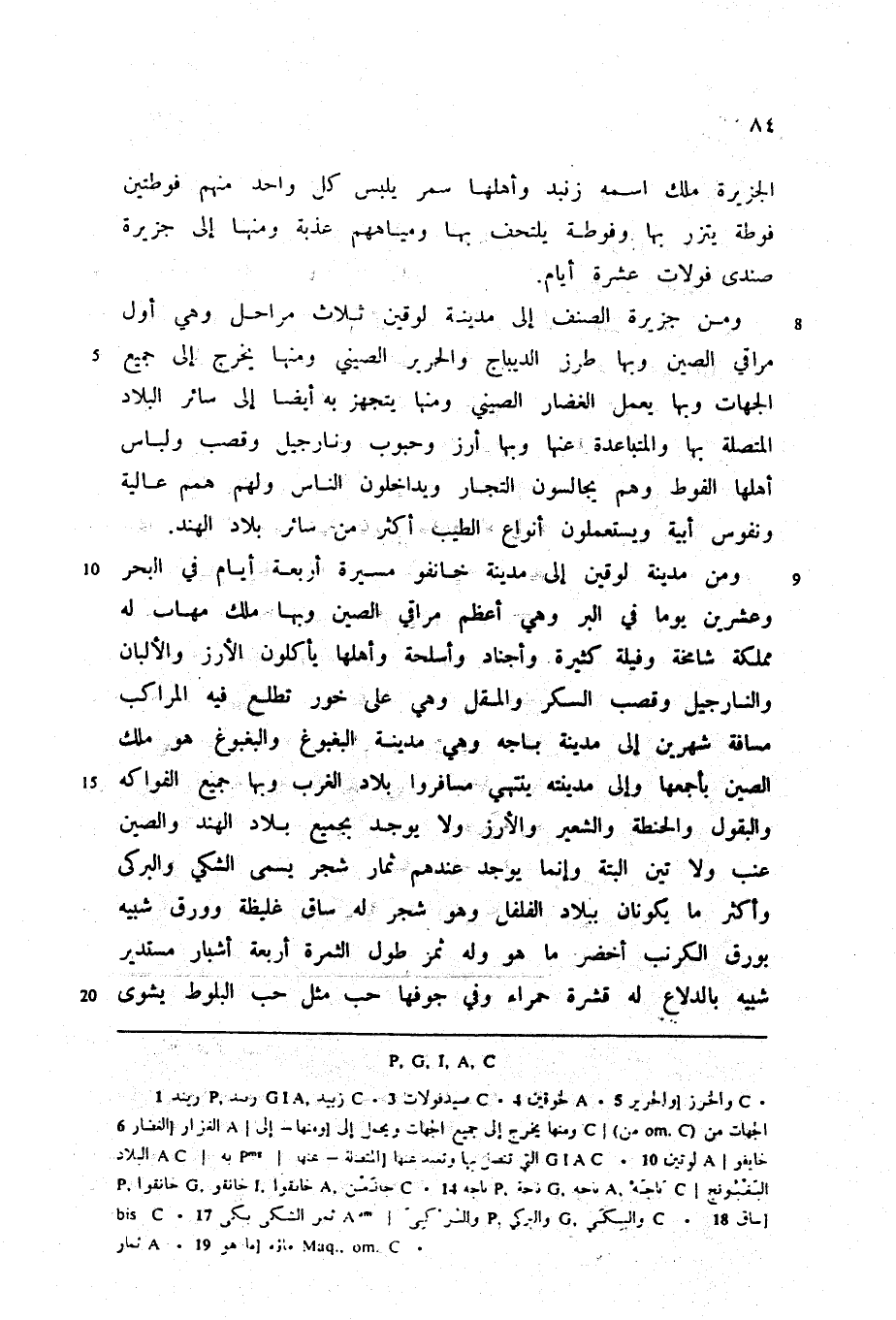الجزيرة ملك اسمه زنبد وأهلها سمر يلبس كل واحد منهم فوطتين فوطة يتزر بها وفوطة يلتحف بها ومياههم عذبة ومنها إلى جزيرة صندى فولات عشرة أيام.