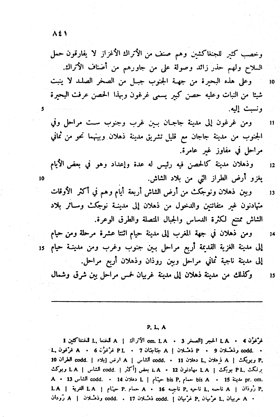 ومن غرغون إلى مدينة جاجان بين غرب وجنوب ست مراحل وفي الجنوب من مدينة جاجان مع قليل تشريق مدينة ذهلان وبينهما نحو من ثماني مراحل في مفاوز غير عامرة.