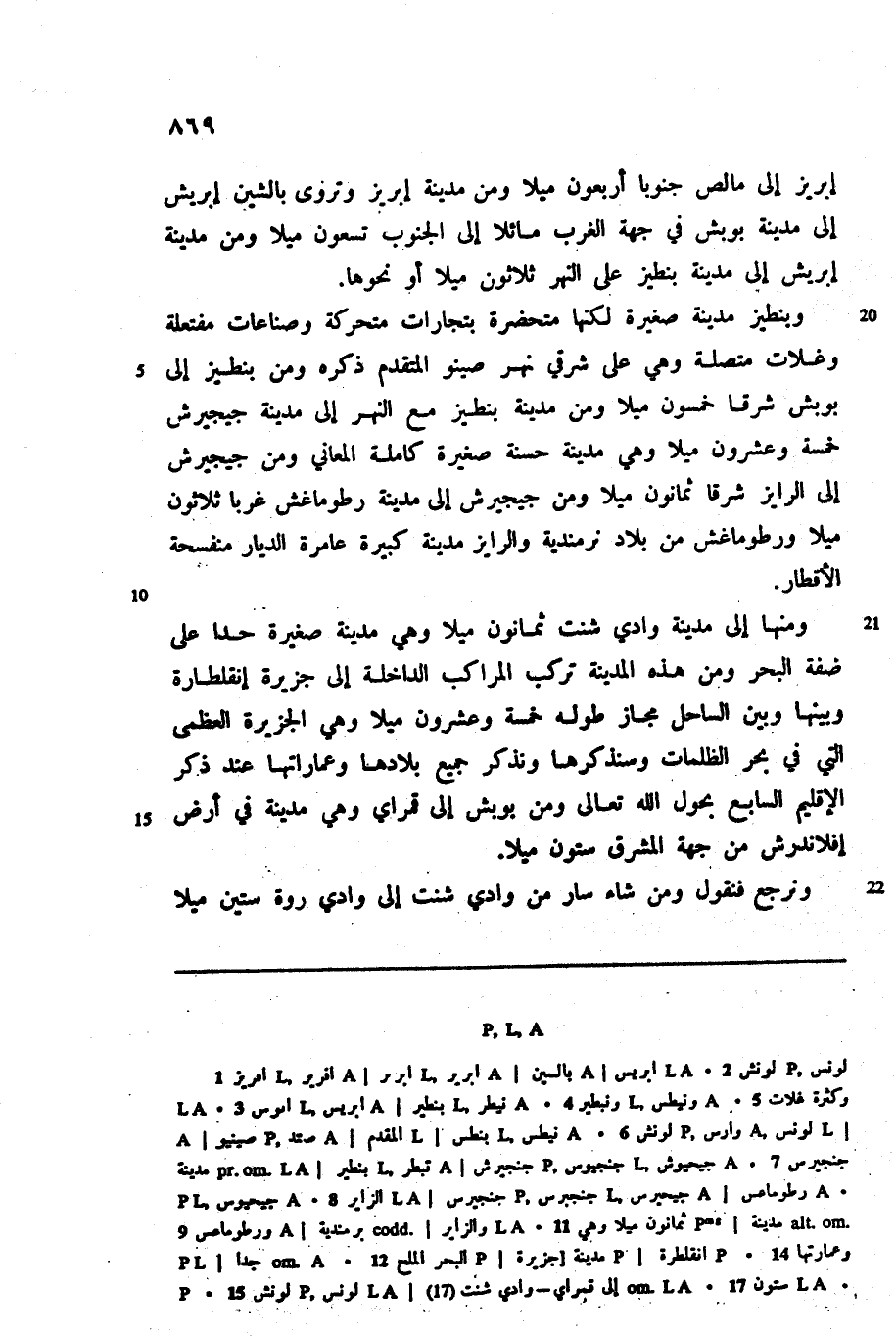 ومنها إلى مدينة وادي شنت ثمانون ميلا وهي مدينة صغيرة جدا على ضفة البحر ومن هذه المدينة تركب المراكب الداخلة إلى جزيرة إنقلطارة وبينها وبين الساحل مجاز طوله خمسة وعشرون ميلا وهي الجزيرة العظمى التي في بحر الظلمات وسنذكرها ونذكر جميع بلادها وعماراتها عند ذكر الإقليم السابع بحول الله تعالى ومن بوبش إلى قمراي وهي مدينة في أرض إفلاندرش من جهة المشرق ستون ميلا.