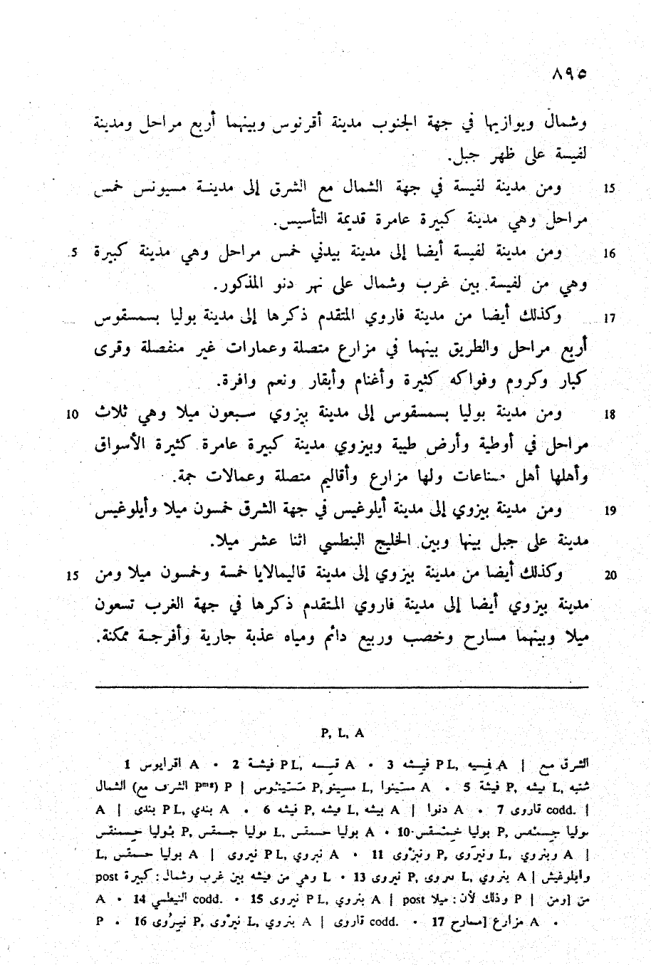 وكذلك أيضا من مدينة فاروي المتقدم ذكرها إلى مدينة بوليا بسمسقوس أربع مراحل والطريق بينهما في مزارع متصلة وعمارات غير منفصلة وقرى كبار وكروم وفواكه كثيرة وأغنام وأبقار ونعم وافرة.
