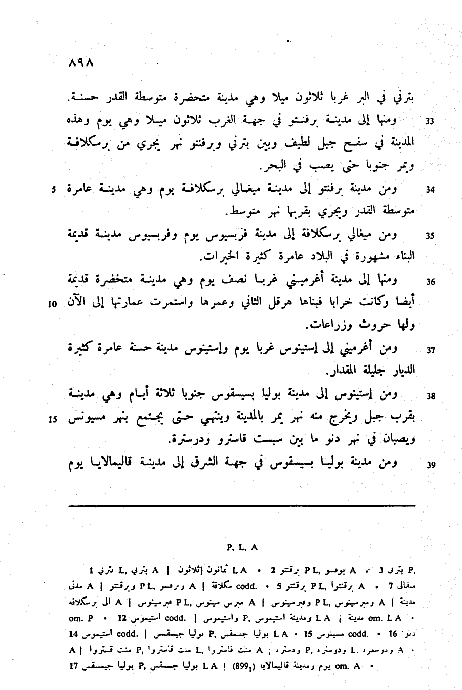 ومن ميغالي برسكلافة إلى مدينة فربسيوس يوم وفربسيوس مدينة قديمة البناء مشهورة في البلاد عامرة كثيرة الخيرات.