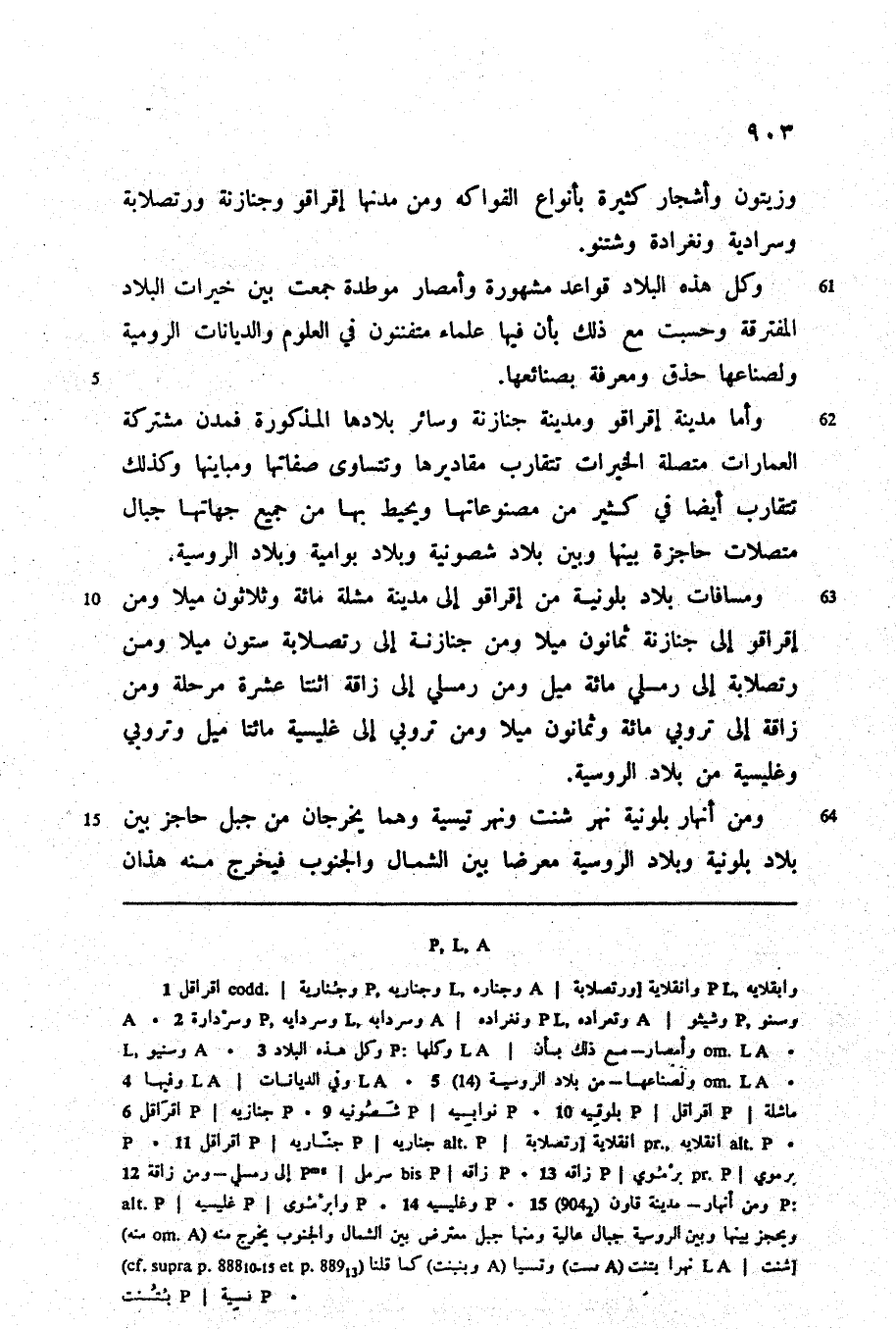 وكل هذه البلاد قواعد مشهورة وأمصار موطدة جمعت بين خيرات البلاد المفترقة وحسبت مع ذلك بأن فيها علماء متفننون في العلوم والديانات الرومية ولصناعها حذق ومعرفة بصنائعها.