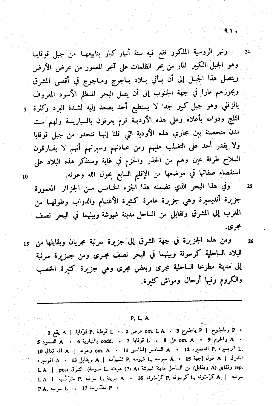 وفي هذا البحر الذي تضمنه هذا الجزء الخامس من الجزائر المعمورة جزيرة أنديسيرة وهي جزيرة عامرة كثيرة الأغنام والدواب وطولها من المغرب إلى المشرق وتقابل من الساحل مدينة شيوشة وبينهما في البحر نصف مجرى.