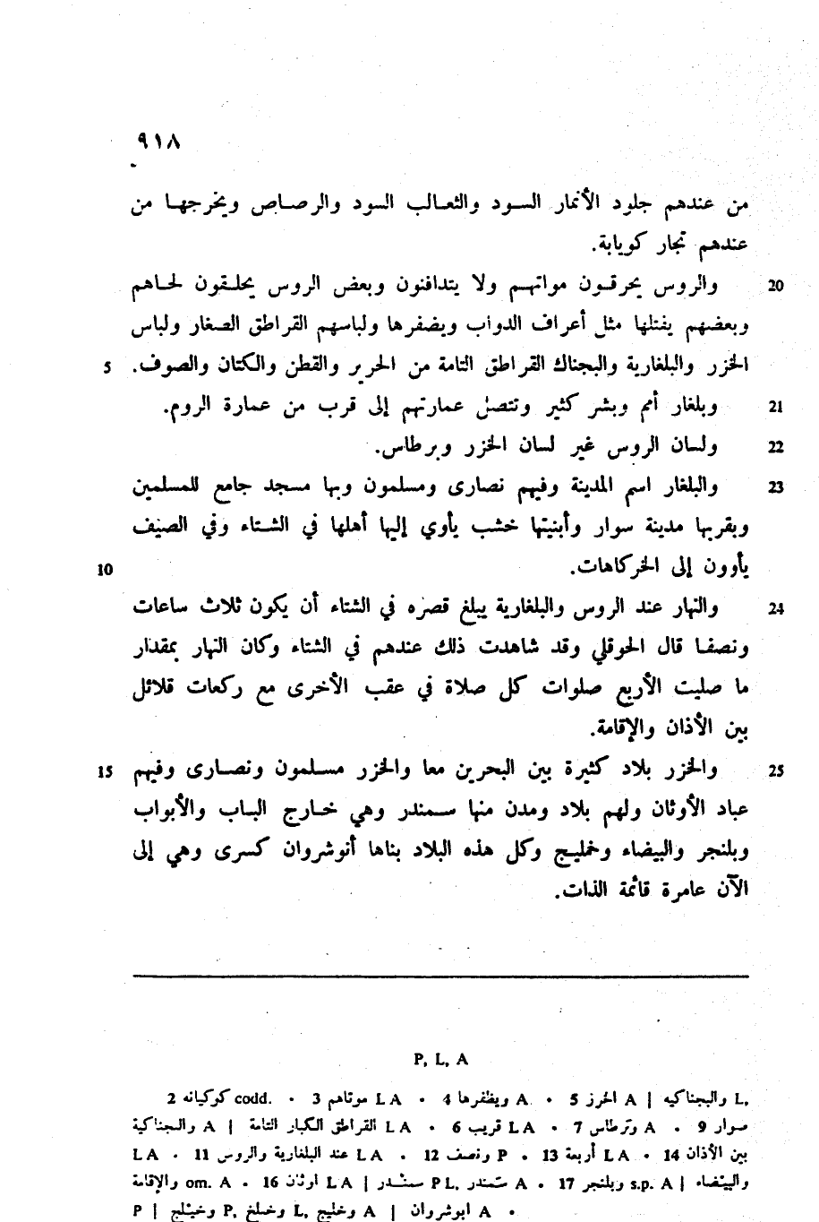 والروس يحرقون مواتهم ولا يتدافنون وبعض الروس يحلقون لحاهم وبعضهم يفتلها مثل أعراف الدواب ويضفرها ولباسهم القراطق الصغار ولباس الخزر والبلغارية والبجناك القراطق التامة من الحرير والقطن والكتان والصوف.