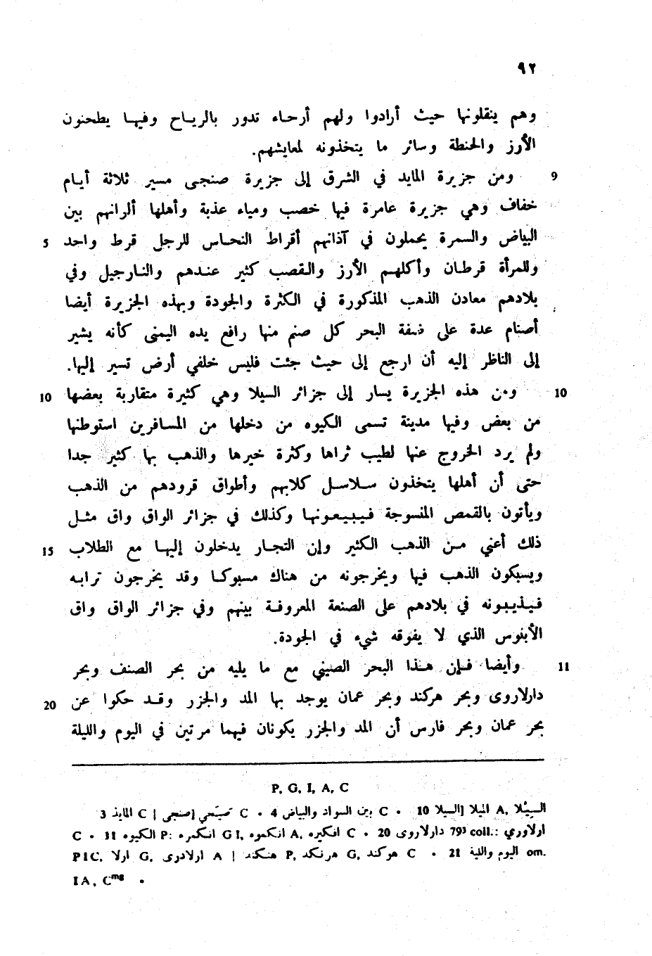 وأيضا فإن هذا البحر الصيني مع ما يليه من بحر الصنف وبحر دارلاروى وبحر هركند وبحر عمان يوجد بها المد والجزر وقد حكوا عن بحر عمان وبحر فارس أن المد والجزر يكونان فيهما مرتين في اليوم والليلة
